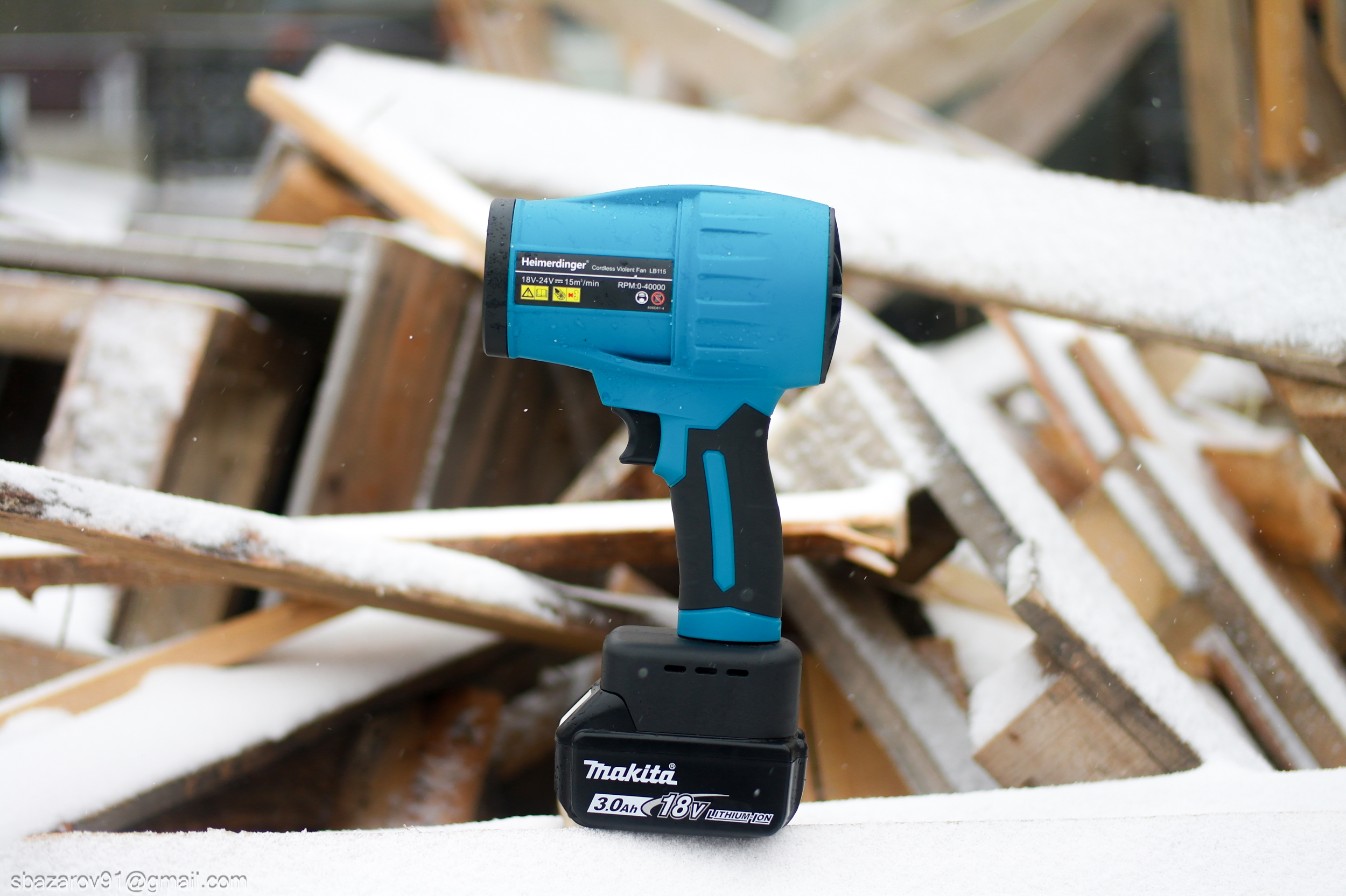 Heimerdinger LB115 — интересный продукт, который должен составить конкуренцию портативным воздуходувкам на базе аккумуляторов 18650. В отличие от них, этот фен создает более мощный воздушный поток и работает от популярного байонета Makita LXT. Как только аккумулятор садится, можно быстро заменить его на другой, в отличие от зарядки аккумуляторов 18650.