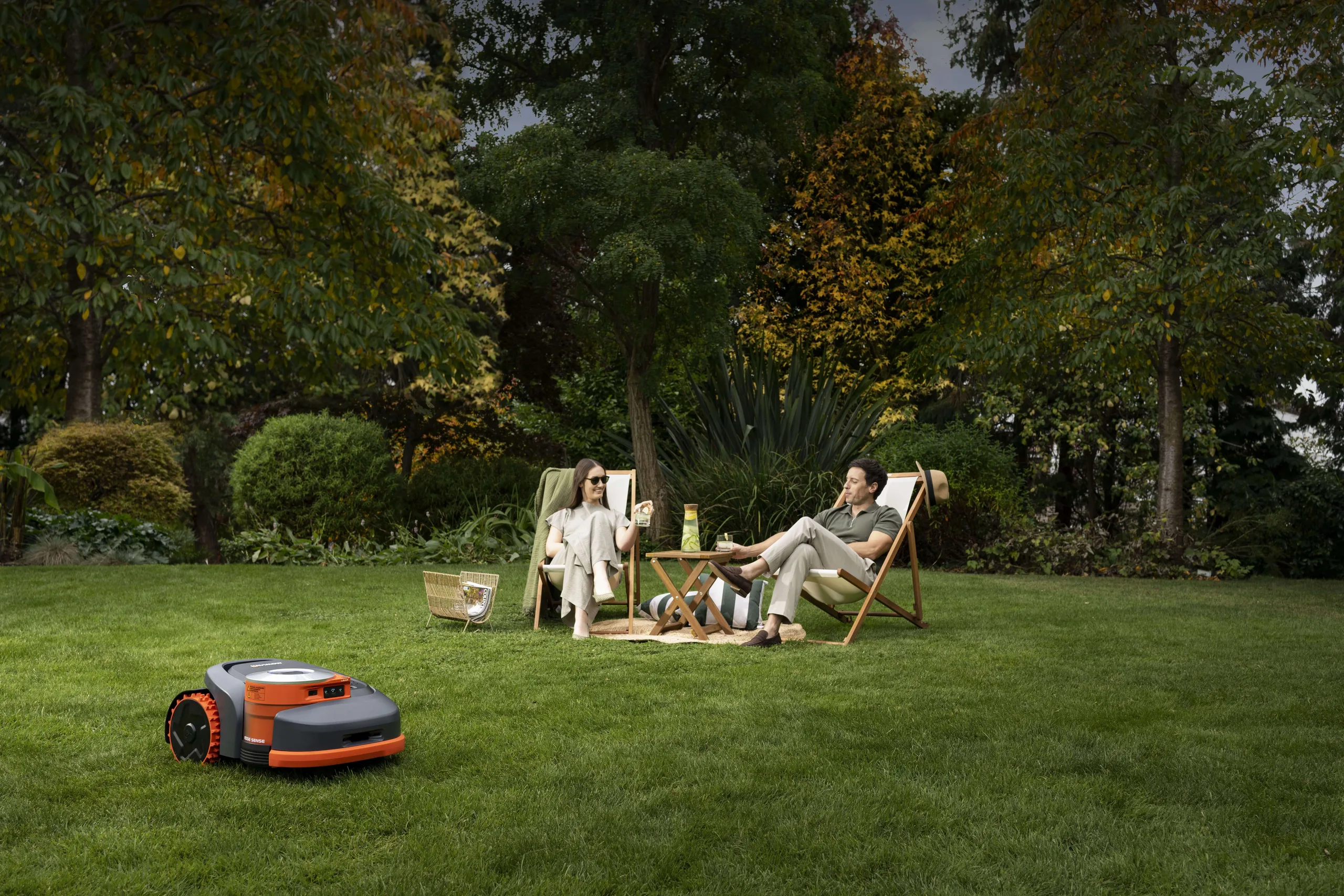 Система Terrain Adapt в сочетании с электронным контролем устойчивости обеспечивает работу на склонах крутизной до 45 процентов. Газонокосилка автоматически меняет высоту ножей и прекращает работу при обнаружении осадков встроенным датчиком дождя. Для защиты от кражи предусмотрены GPS-трекер с оповещениями о покидании заданной территории и интеграция с сервисом Apple Find My. Функция геозоны работает по подписке.