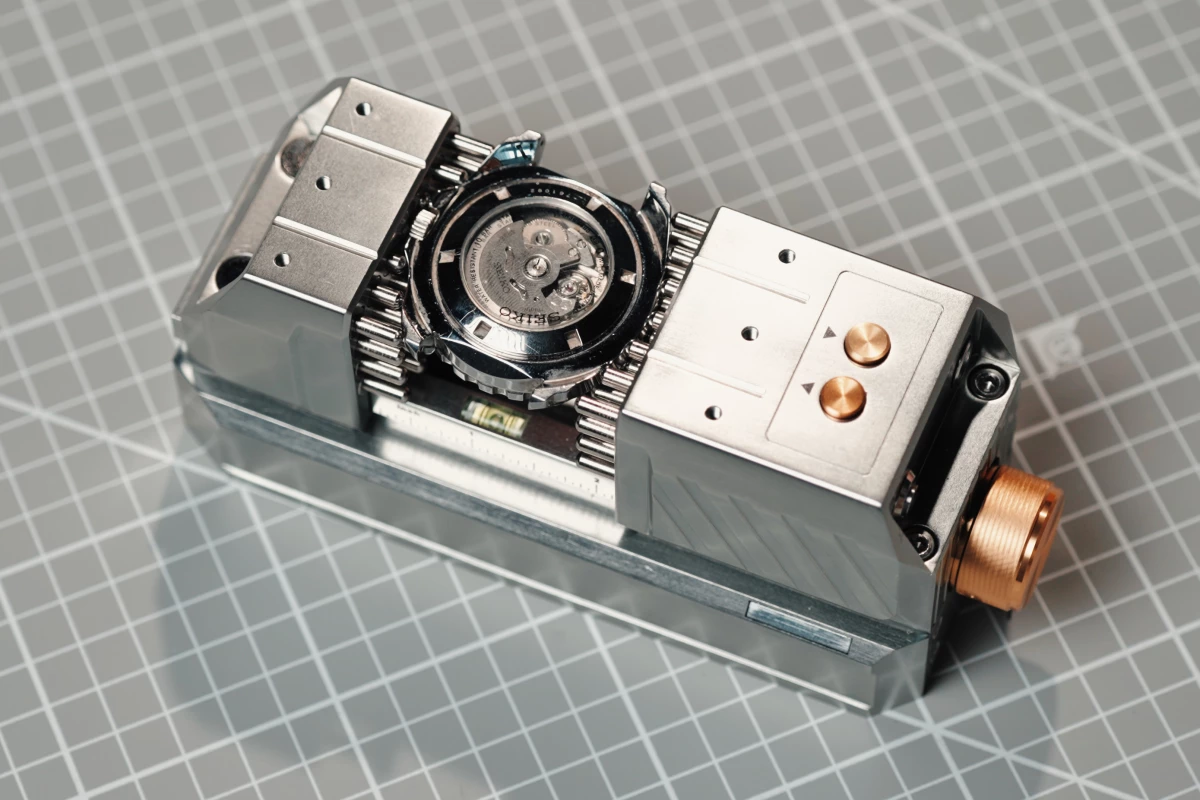 Питание бесшумного электрипривода тисков осуществляется с помощью встроенного аккумулятора ёмкостью в 10500 мАч. Корпус тисков выполнен из цельного металла с ЧПУ-обработкой и на выбор есть две версии: стандартная алюминиевая или титановая. Также доступны 2 цвета анодирования: черный и серебристый.