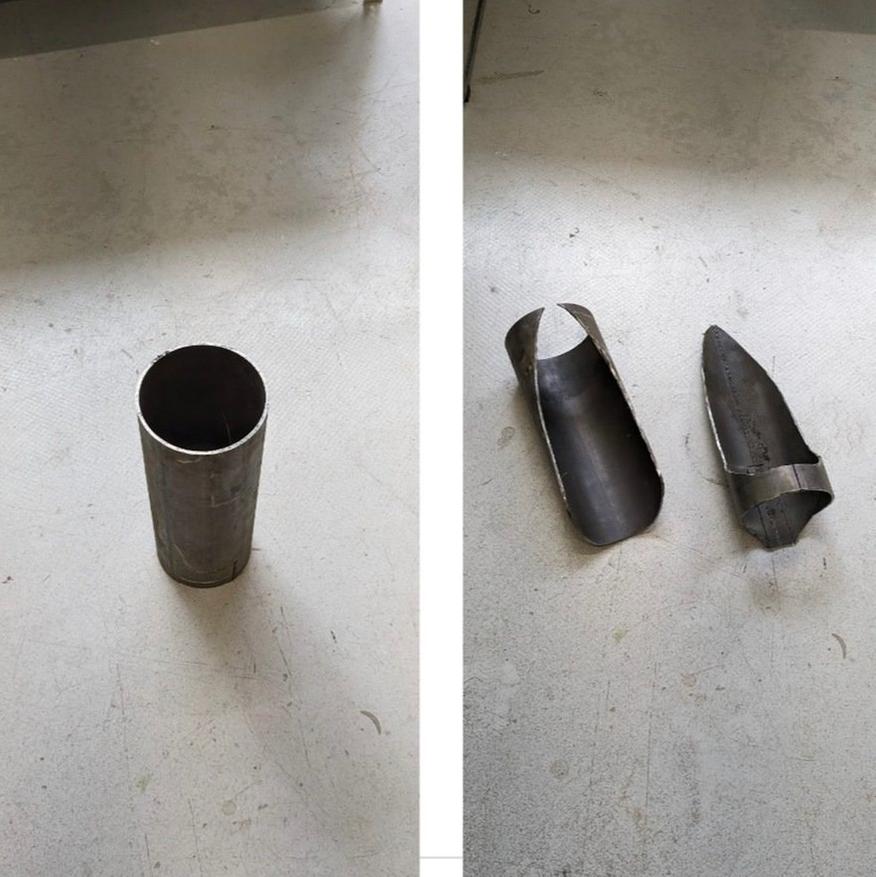 Производственный процесс разработан с учетом минимизации отходов: лезвие вырезается из стандартной стальной трубы, после чего края протектора подвергаются сгибанию, а держатель рукоятки присоединяется методом сварки.