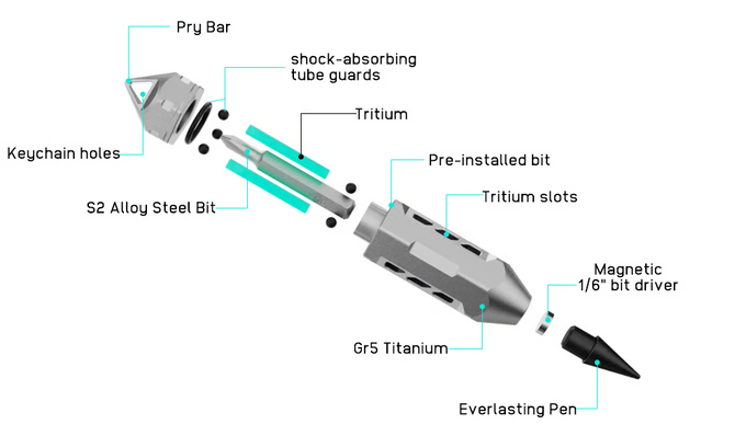 Китайские инженеры из Metool выпустили второе поколение EDC-мультитула в формате подвески. В корпусе Dark Fire можно хранить 4мм отвёрточную биту, а светящиеся колбочки с газом тритием теперь убраны вглубь и посажены на уплотнительные кольца.