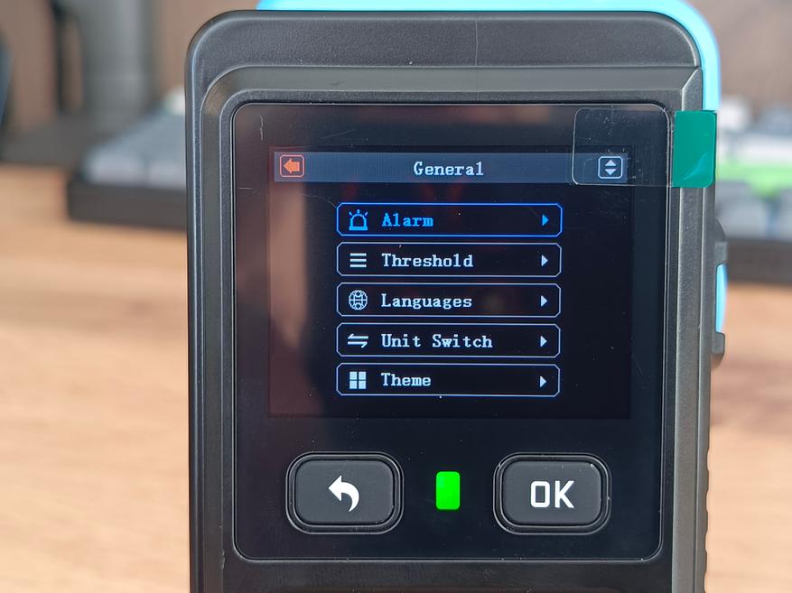 В настройках прибора можно переключить тёмную тему на светлую, а также изменить яркость дисплея, хотя, на мой взгляд, это практически бессмысленно, так как экран изначально не отличается высокой яркостью. Также есть возможность включить встроенный динамик и вибрацию.