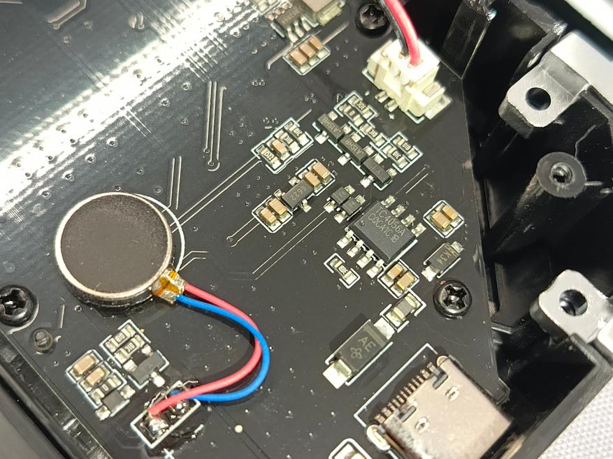 Также внутри корпуса расположен аккумулятор ёмкостью 1500 мА·ч, небольшой динамик и вибромоторчик.