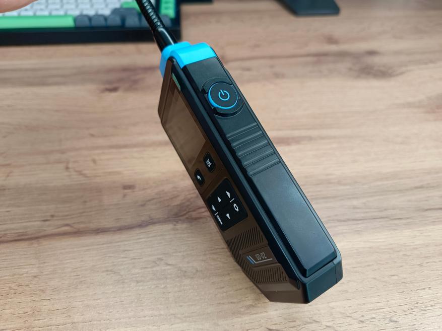 Прибор выполнен в фирменном стиле бренда Fnirsi. Он компактный и удобно лежит в руке. На лицевой панели расположены механические кнопки и LCD-дисплей. Снизу находится разъём USB-C для зарядки и обновления прошивки, а с правой стороны — кнопка включения.