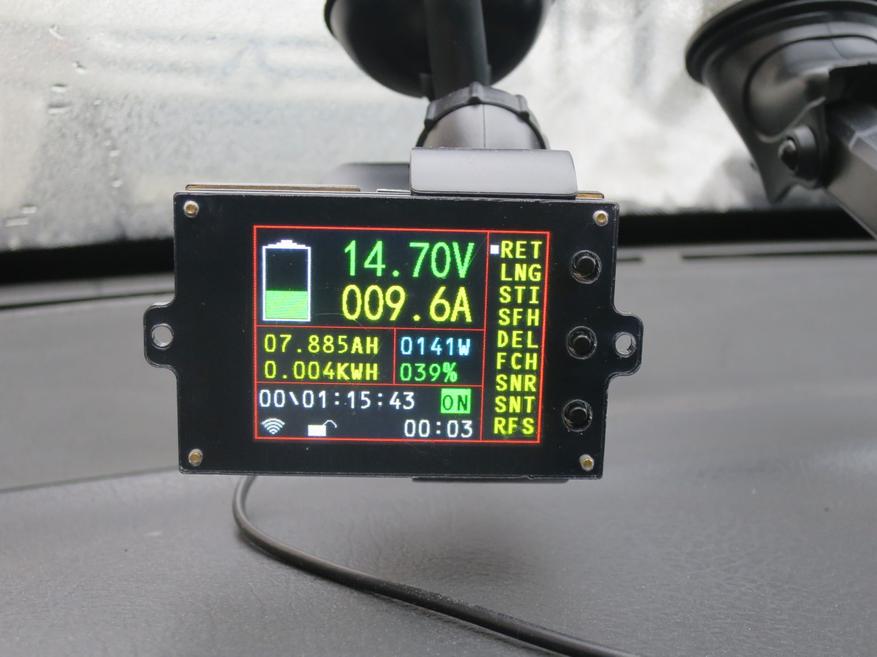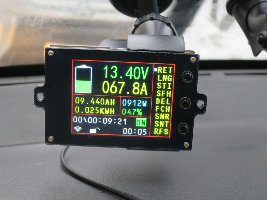 За связь отвечают два радиомодуля на микросхеме nRF24L01. Они работают на частоте 2,4 ГГц. Дальность действия — до 30 метров. Этот тип связи располагает 127 каналами на разных частотах, а протокол обмена позволяет объединять до семи устройств в группы. Недорогое, но очень функциональное решение. В машине проверить работу электросистемы — не нужно провода в салон тянуть. Дома я аккумулятор заряжаю где-то поближе к вытяжке, а сам сижу у компа. Раньше периодически наведывался проверить как там дела с зарядкой. Теперь все под контролем — достаточно воткнуть экран в юсб.