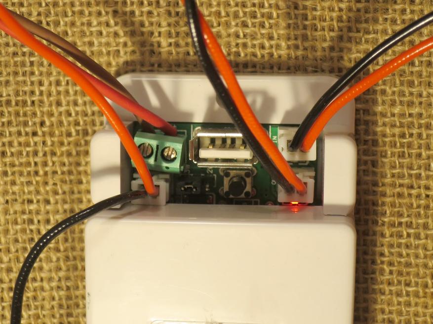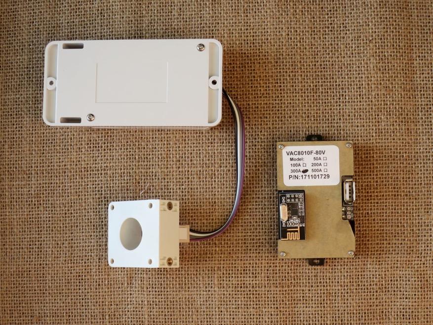 Блок снабжен выходом usb. Никакая информация по нему не передается и не принимается — это только разъем питания. Снабжен таким выходом и измерительный модуль. Он как раз формирует на выходе стабильные 5 вольт. Модуль с экраном можно соединить usb проводом папа-папа. Он в комплекте. Но и в этом случае связь только по радиоканалу.