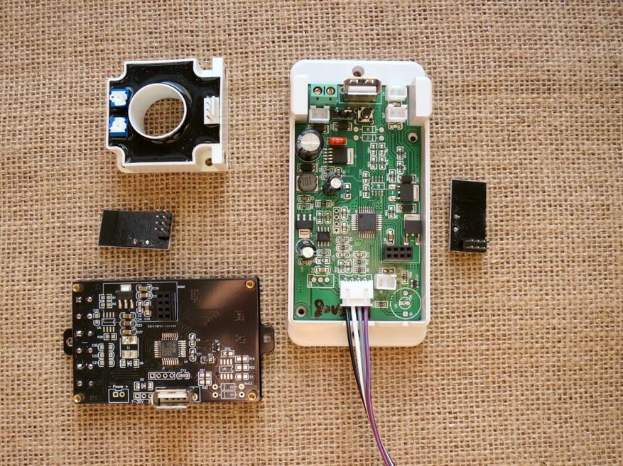 На плате блока измерения имеются четыре разъема, гнездо USB, джампер и кнопка.