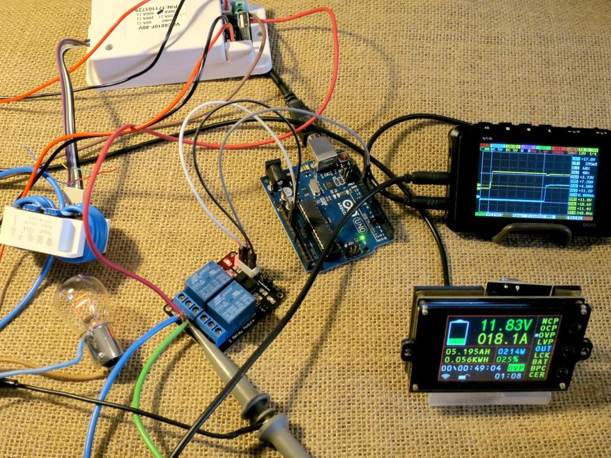 Для определения скорости отображения параметров на экране я записал видео с запуском лампочки при помощи реле.
