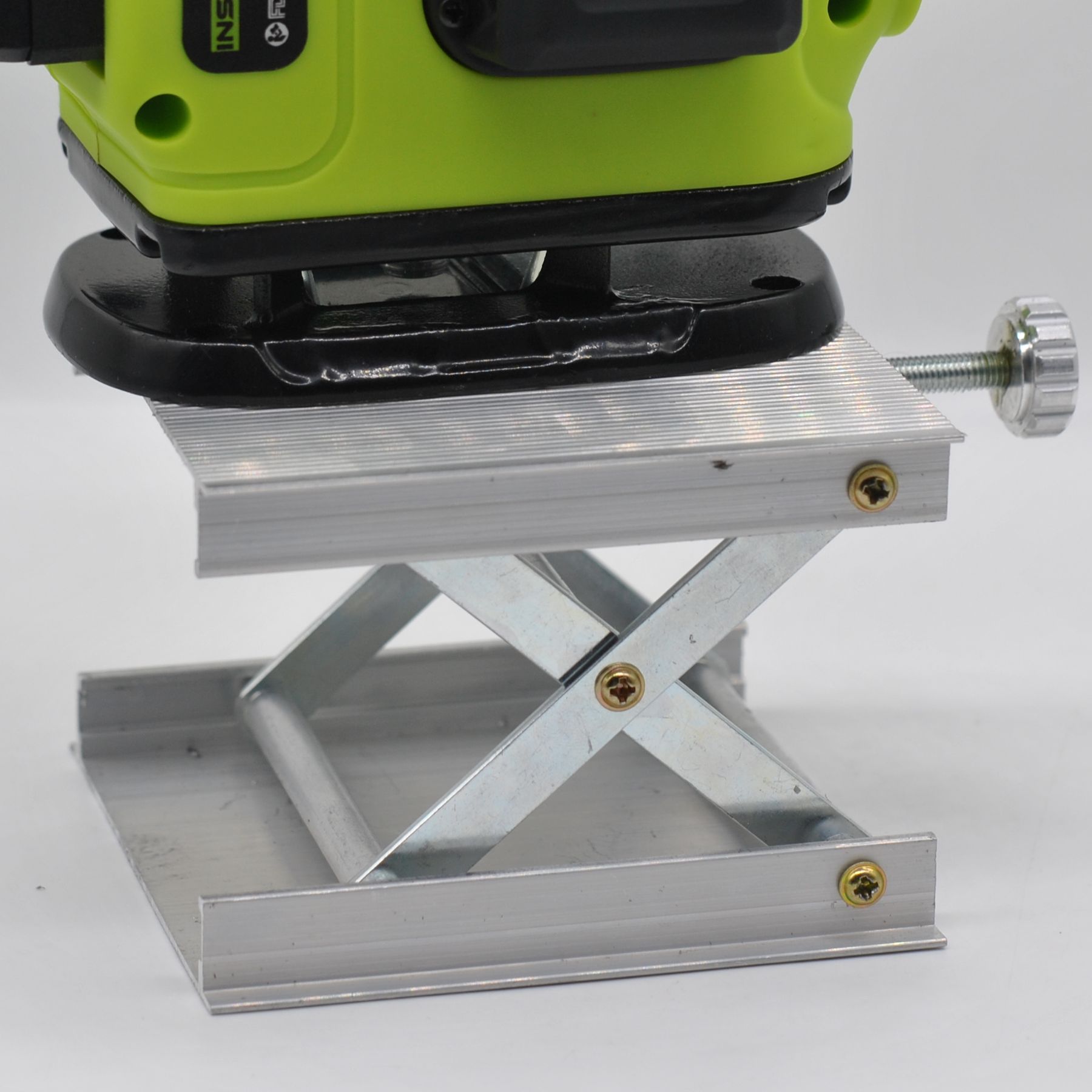 Для монтажа на плоскость предусмотрена алюминиевая платформа 9х9 см (ножничный подъемный механизм) и поворотное основание с тремя регулируемыми опорами: