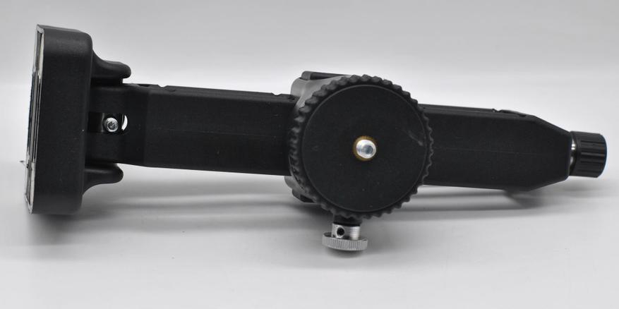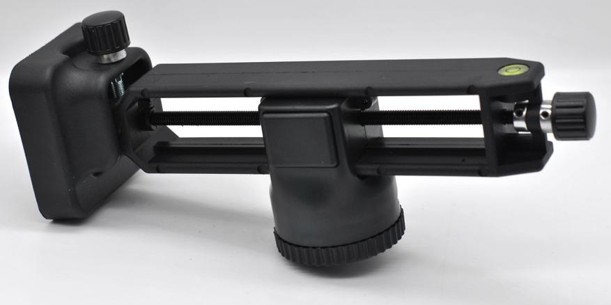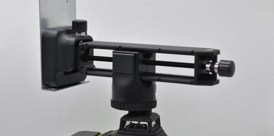 Еще уровень можно подвесить струбцинкой за башню излучателя или поставить на любой штатив (на корпусе пара втулок с резьбой 1/4″) и есть переходник на 5/8″.