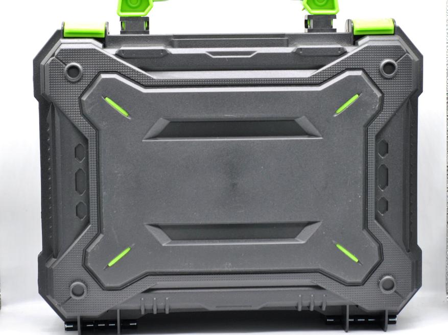 Хочется отметить качество чемоданчика (размеры 34х27х13 см): тут металлическая ось в петлях, крупная ручка и плотный пластик, который не прогибается (на такой и присесть для отдыха можно).