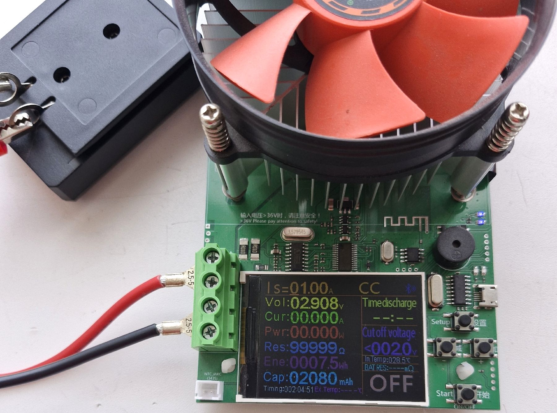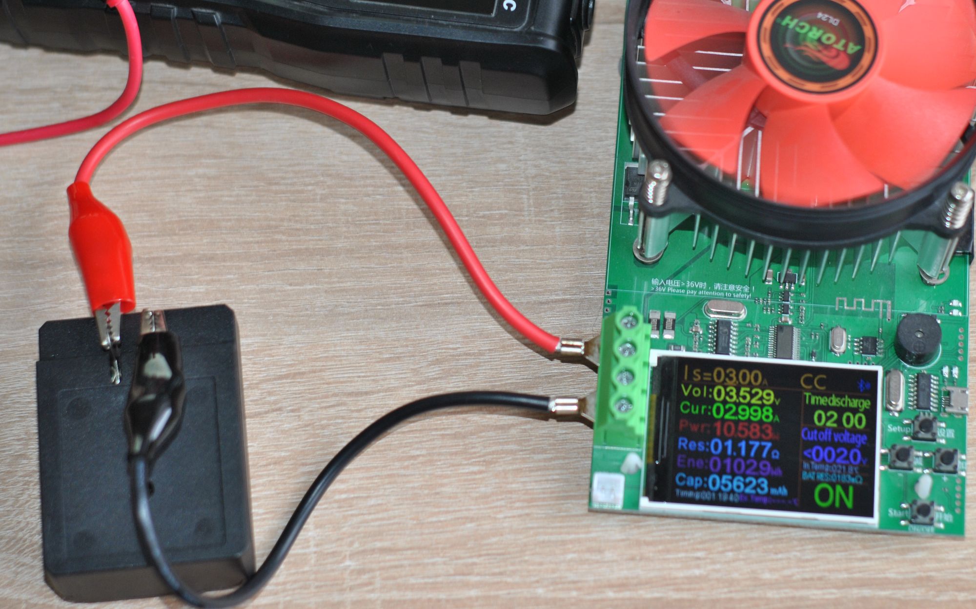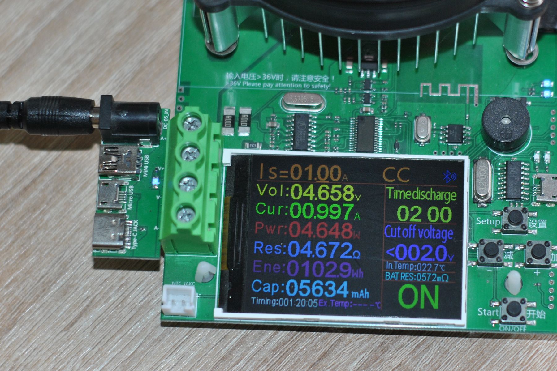 Разрядка аккумулятора током 1 А до 2+ В на электронную нагрузку показала результат емкости ~2 Ач (что ниже заявленного 3 Ач).