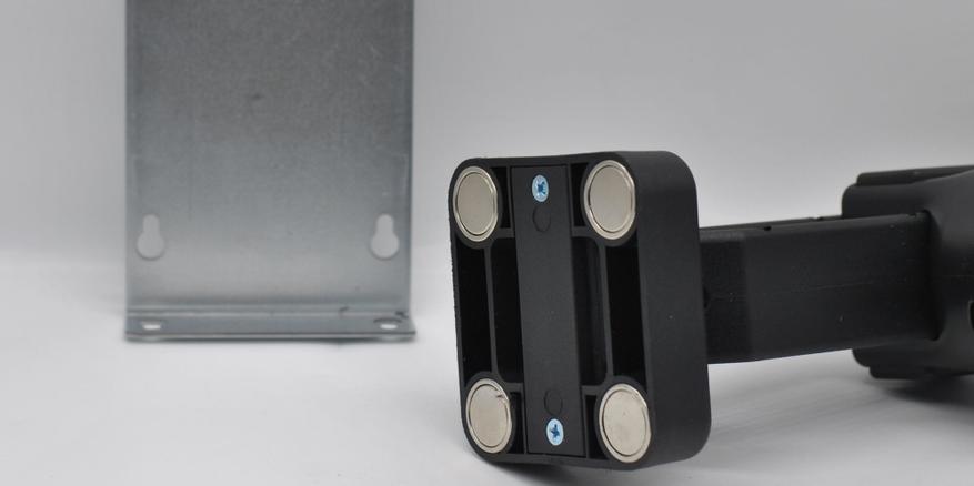Магнитный подвес удобен в работе, с ним не нужен штатив, а если нет металлических предметов поблизости, есть комплектная пластина с отверстиями (ее можно прикрутить на гипсокартон или фанеру).