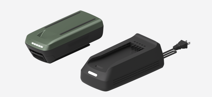 Воздуходувка оснащена съемным аккумулятором напряжением 54 В, обеспечивающим непрерывную работу в течение 50 минут. Конструкция включает регулятор ToneShift с пятью режимами мощности и триггер ToneLock для фиксации выбранных параметров. Встроенный светодиодный фонарь мощностью 700 люмен позволяет работать в условиях недостаточной освещенности.