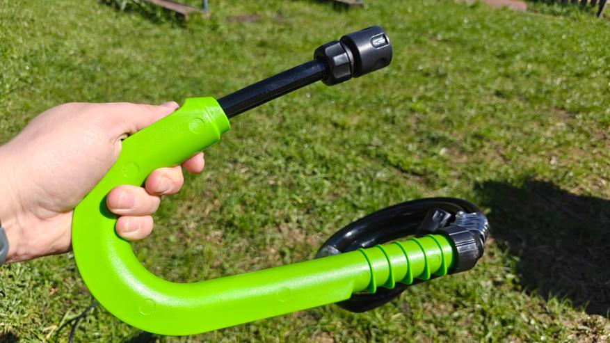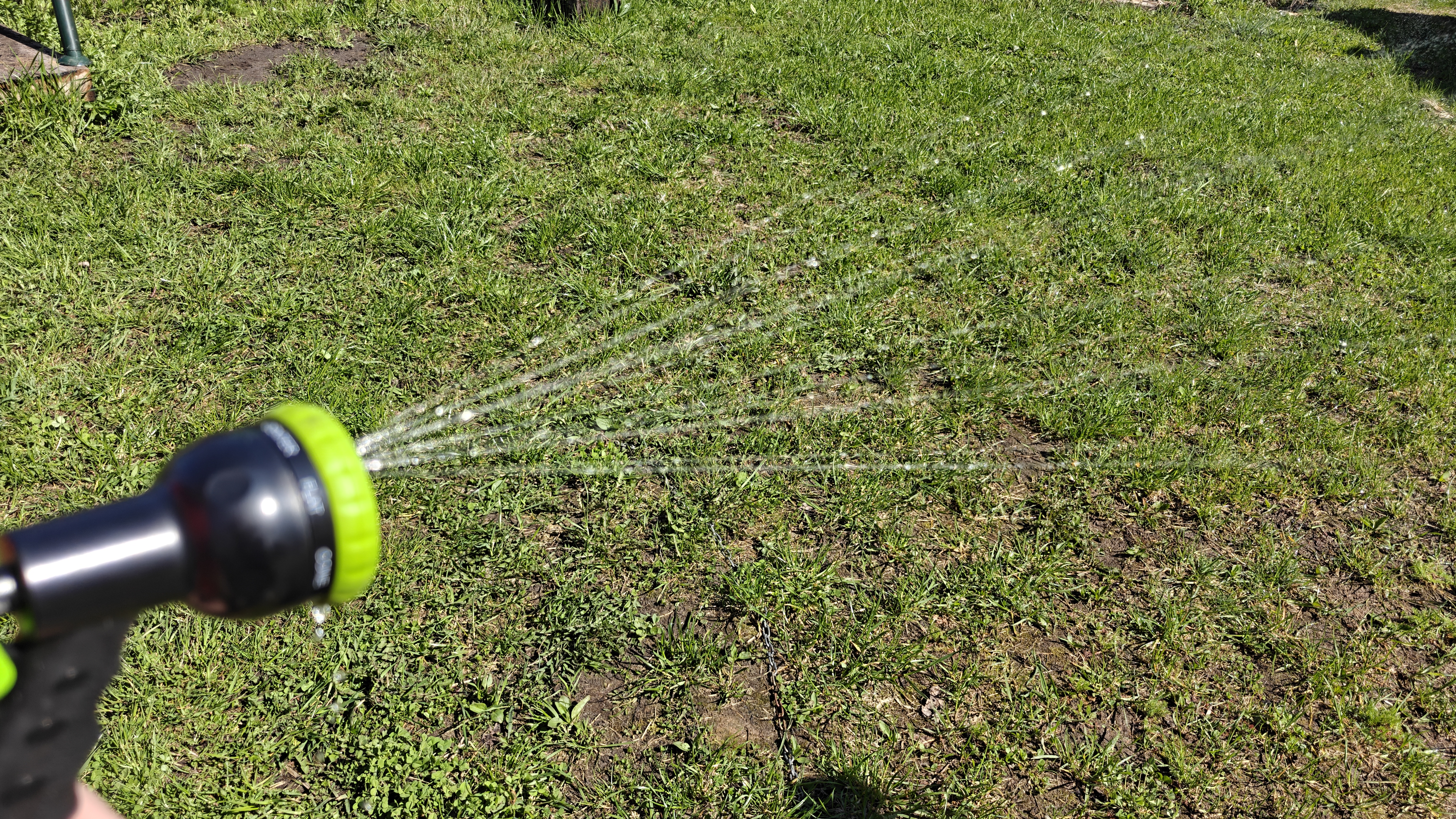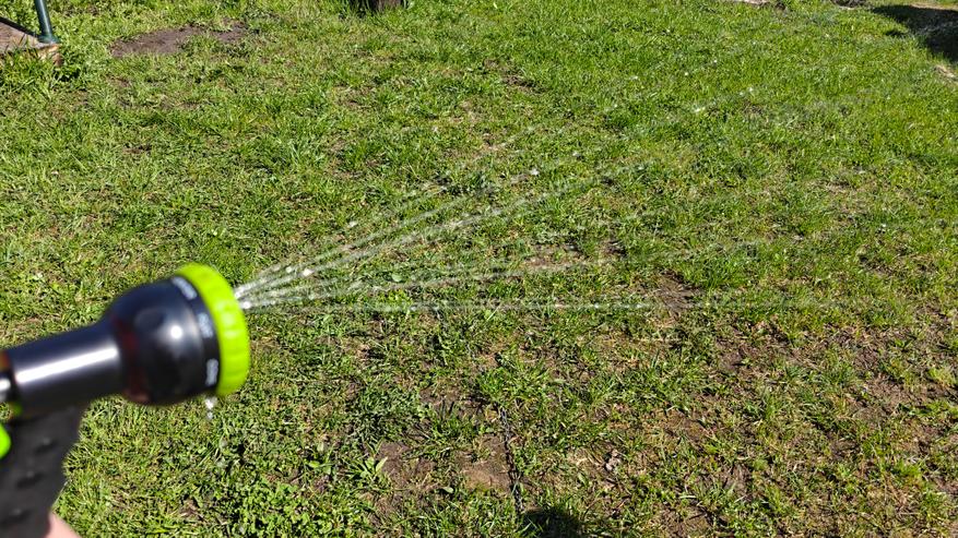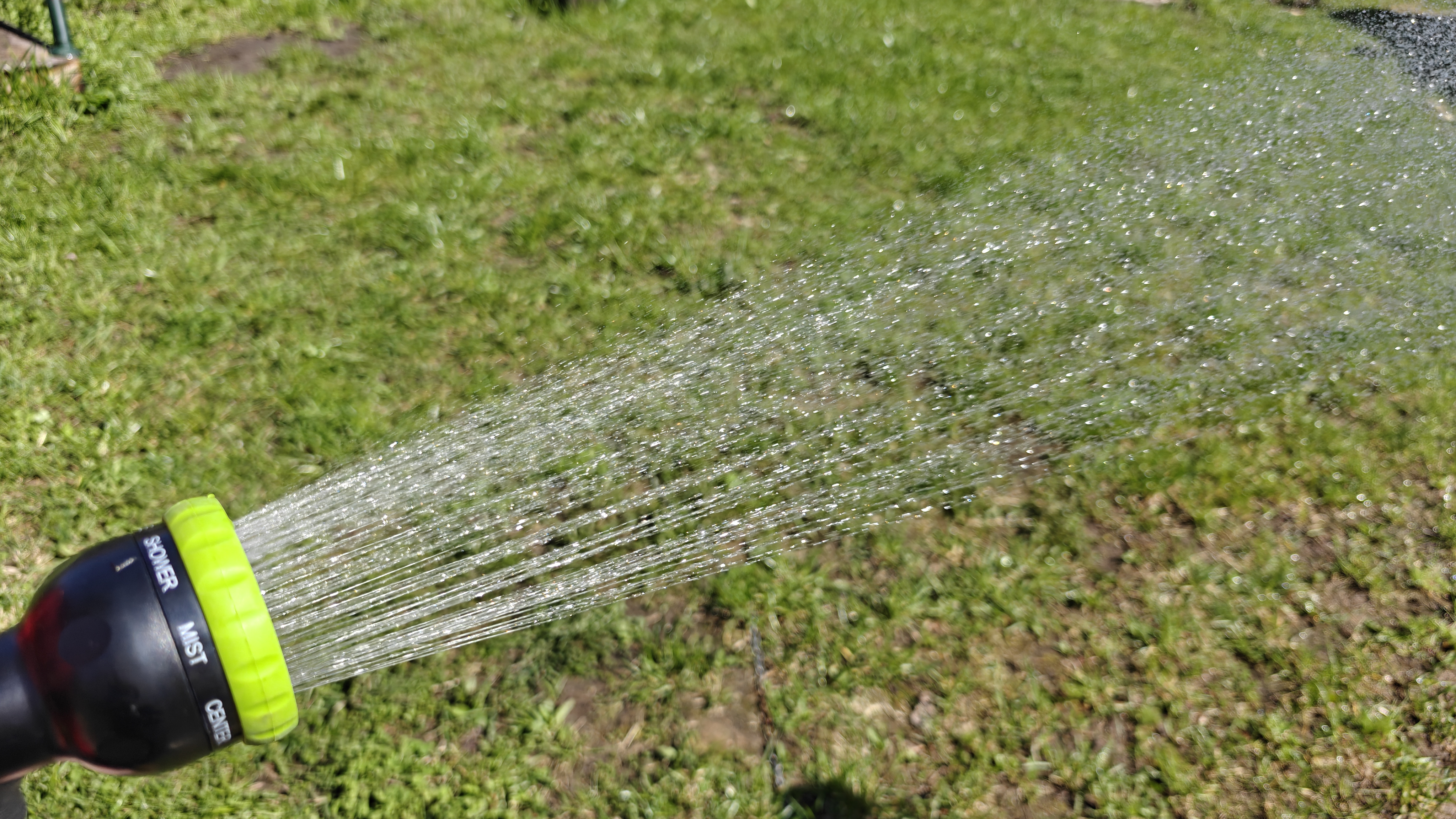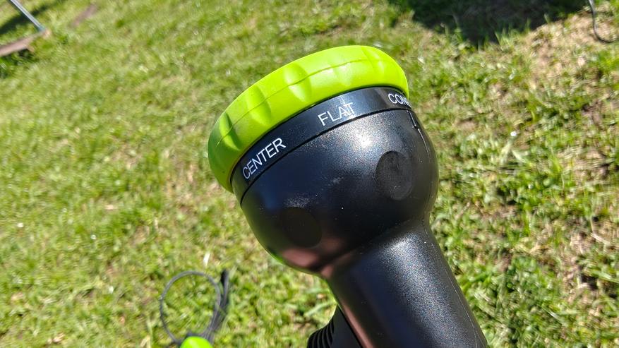 Лейка имеет классические режимы для полива. Тут и мощная струя, и легкий душ, и подача воды без напора с рассекателем. В общем можно подобрать режим для полива абсолютно любой культуры. У пистолета есть фиксатор нажатия, чтобы не жать постоянно на рукоятку, а зафиксировать и поливать расслабленно. А главное, насос практически бесшумен.