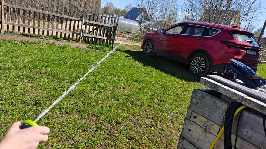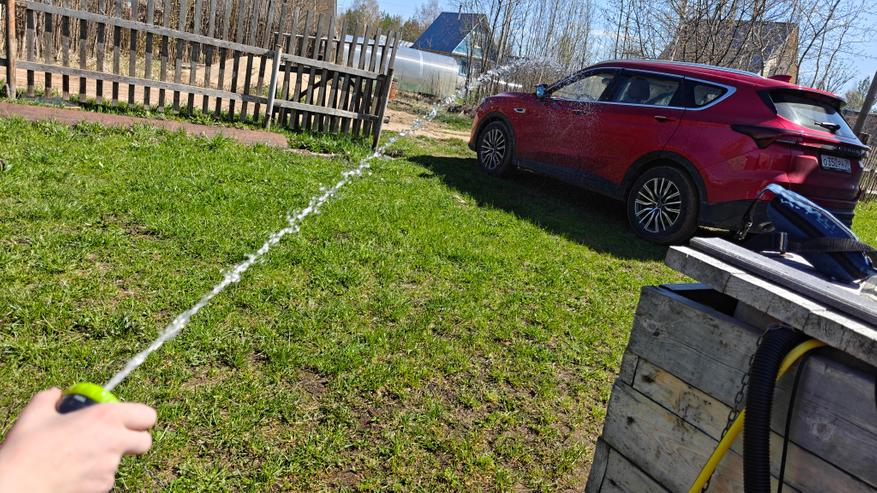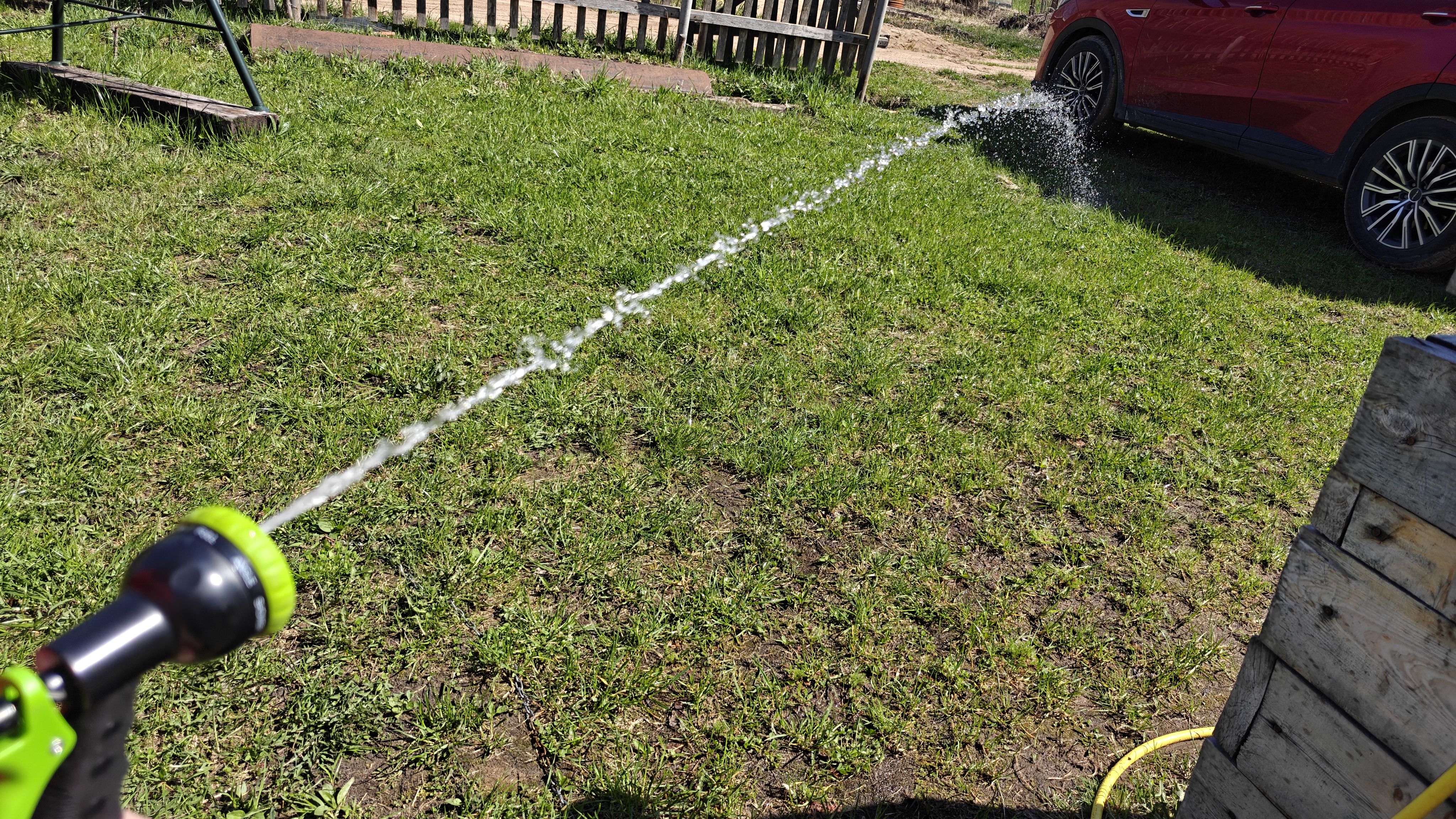 Детей особенно порадовал режим мощной струи. Напора хватает на создание плотной струи, бьющей на расстояние около 5-7 метров.