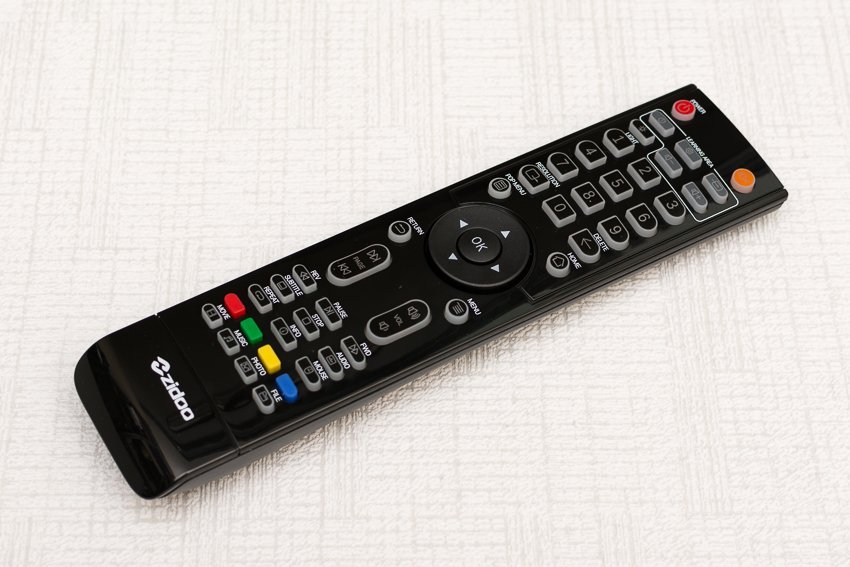 Штатный ИК-пульт удобный, угол охвата широкий, дальность большая. Есть блок программируемых кнопок (для копирования функций других пультов). Пульт снабжён автоматической подсветкой кнопок. Активируется при нажатии на любую кнопку и гаснет через некоторое время.