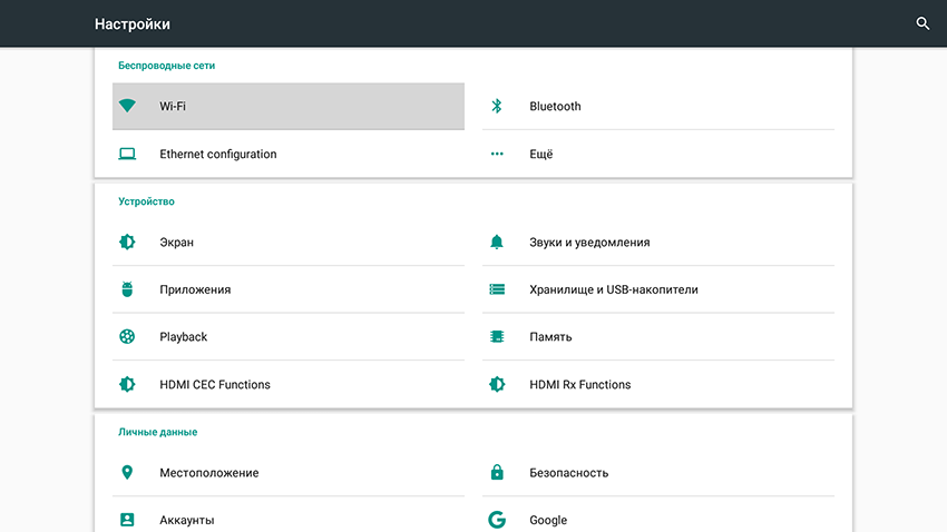 Настройки сосредоточены в двух программах: Быстрые настройки (от Zidoo) и Настройки (штатный вид настроек Android). Ещё часть настроек (особенно сетевые сервисы) сосредоточены в системе OpenWrt, о ней я упомяну чуть позже.