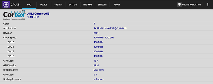 4 ядра ARM Cortex-A53 до 1,4 ГГц