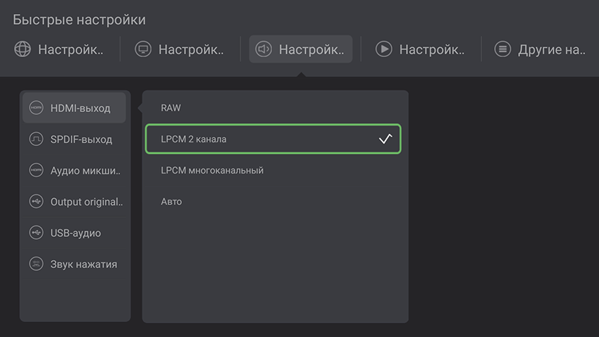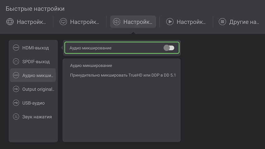 Звук> HDMI, SPDIF, Микширование, Вывод звука без изменения частоты дискретизации, USB-аудио