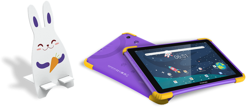 Эргономичный дизайн планшета SmartKids Max не сможет оставить вас равнодушным. Он яркий, броский и притягивающий внимание. А благодаря стильной подставке в форме кролика гаджет устанавливается в удобной позиции. Практичный аксессуар, который кроме привлекательного внешнего вида отлично выполняет свое предназначение.