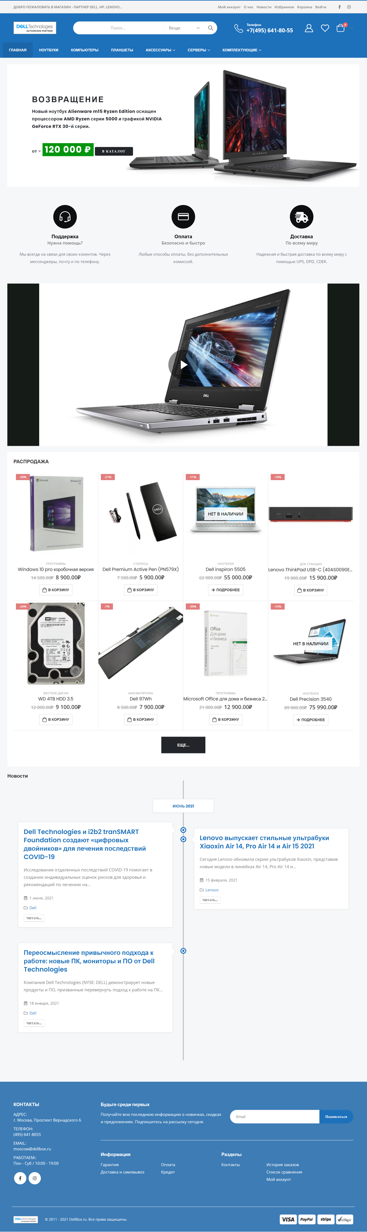Сайт магазина, расположенный по адресу https://dellbox.ru, сделан на распространенном шаблоне от WordPress — все крайне просто и без каких-либо претензий на оригинальность.