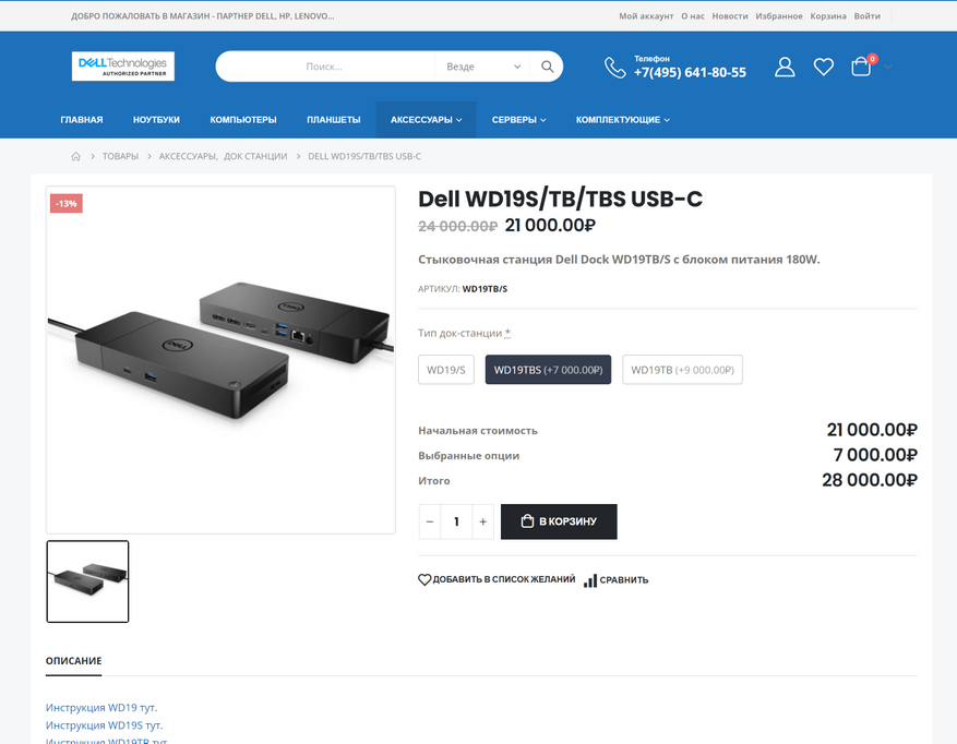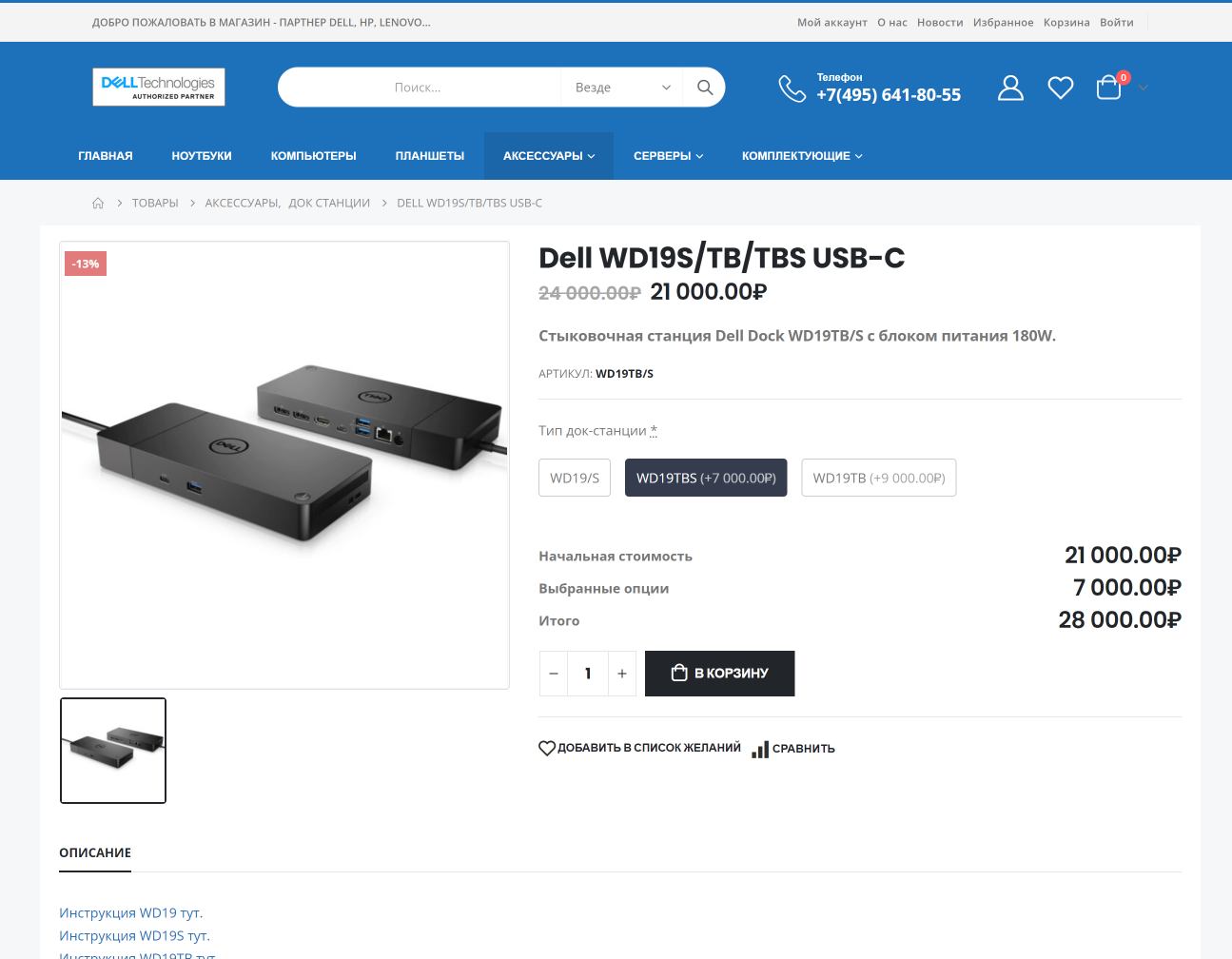 В качестве «тестовой покупки» на этот раз выступила док-станция, в карточке которой и стартовала процедура заказа. Кладем товар в корзину.