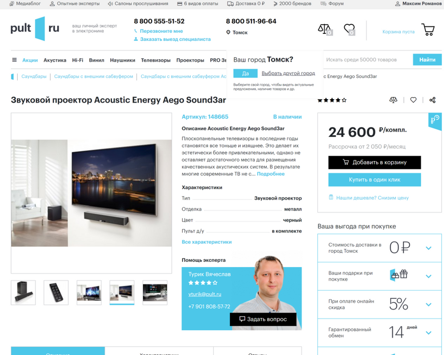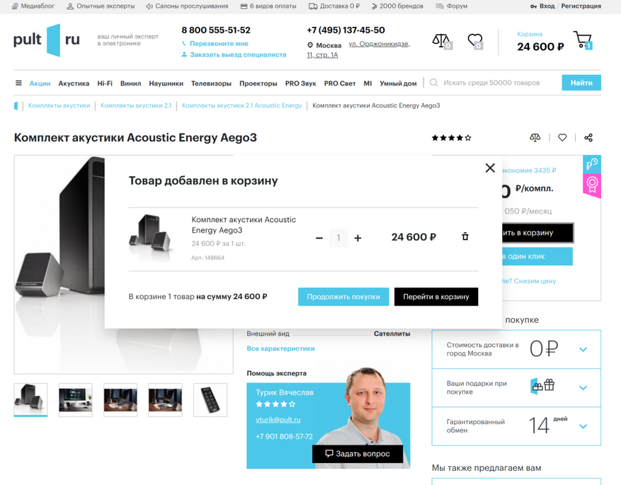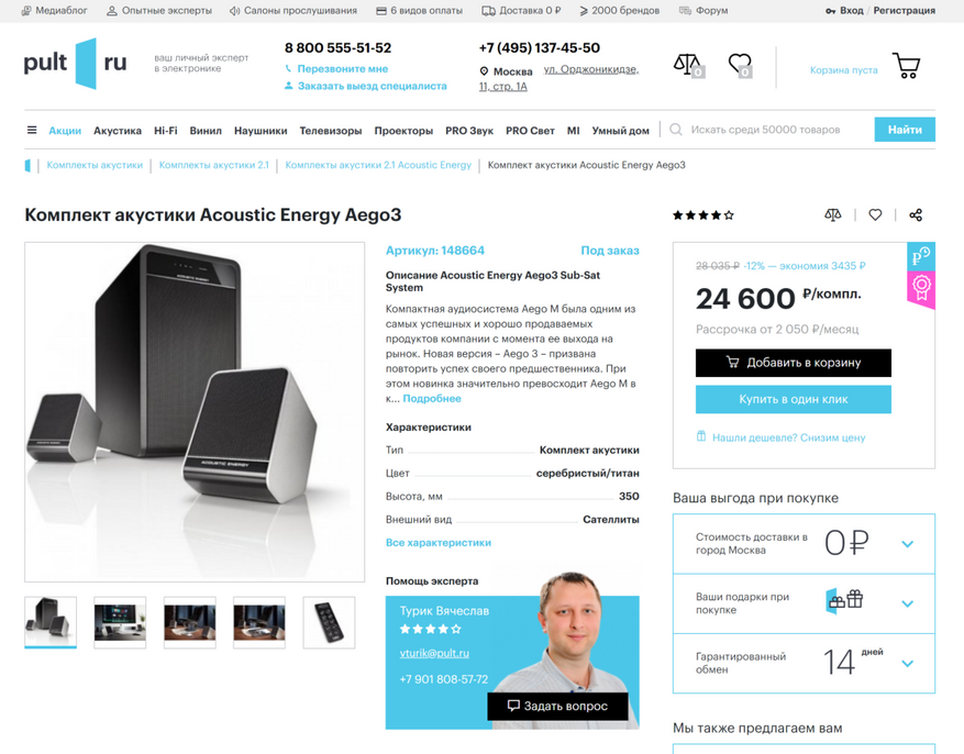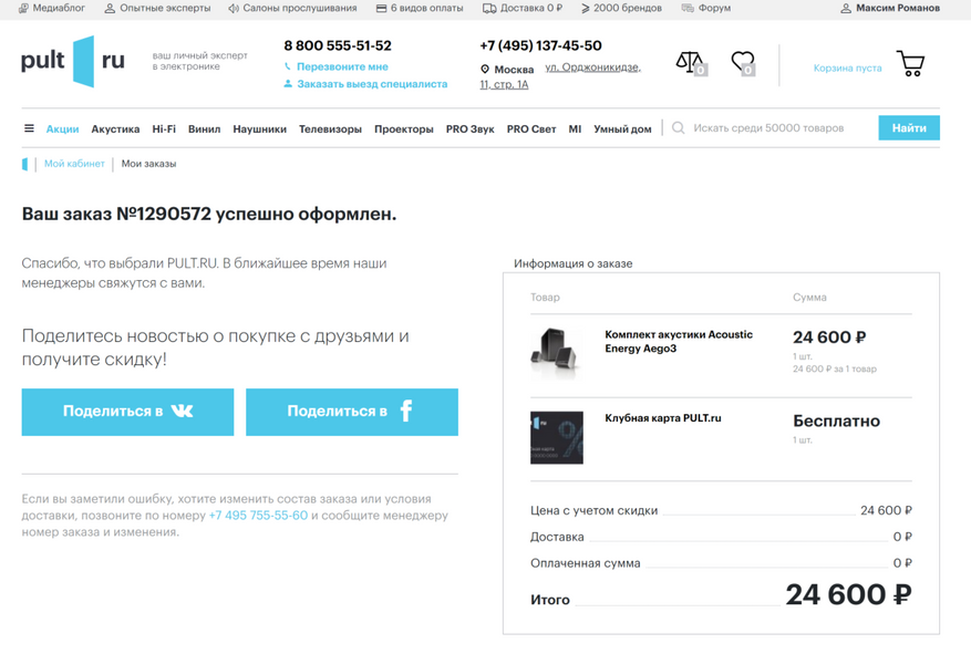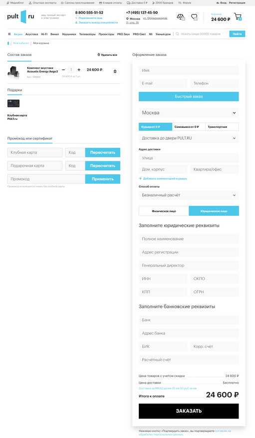 Интернет-магазин Hi-Fi-/Hi-End-техники Pult.ru: пробуем купить товар со статусом «под заказ» от имени юридического лица