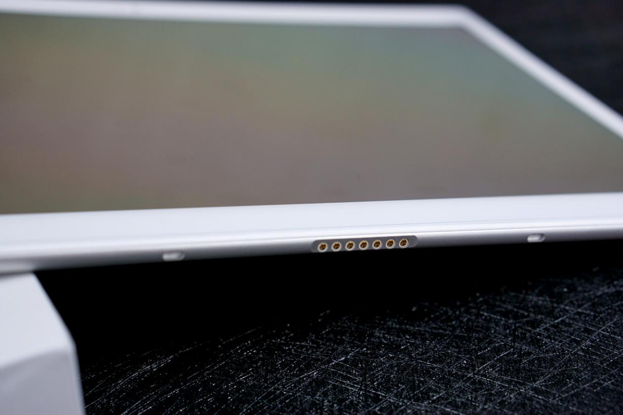 Снизу порт pogo-pin, для док-клавиатуры, которую можно будет докупить отдельно.