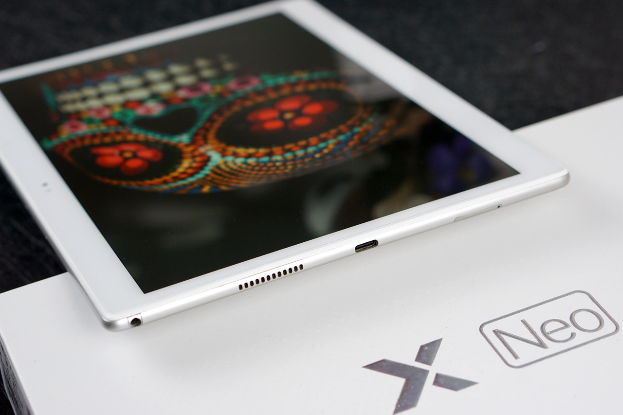 Размеры X Neo составляют 245,9*175,4*7,2 мм и вес 489 г. Лежит в руках не так хорошо как 8 дюймовый планшет, об использовании одной рукой можно забыть, тем не менее, благодаря тонкой и легкой конструкции, пользоваться планшетом удобно. Несмотря на тонкий корпус, X Neo достаточно прочный, загнуть не получится. В общем, качество сборки очень даже хорошее, совсем не уступает конкурентам с ценниками повыше.