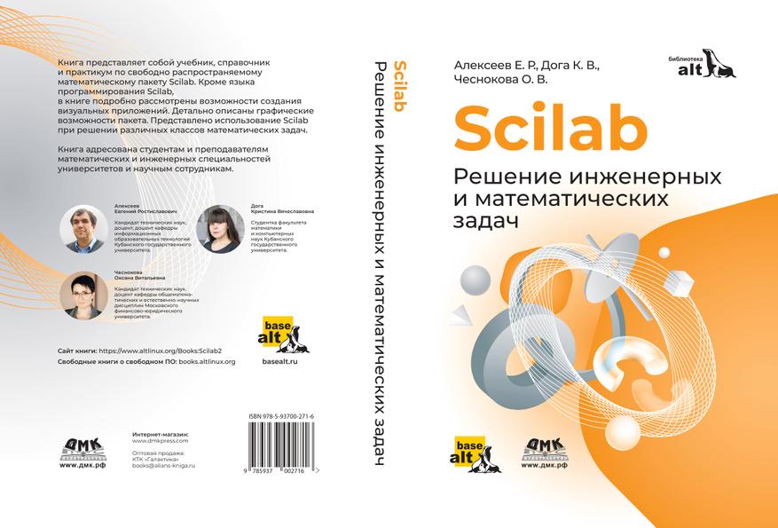 «Библиотека ALT» — это книги для профессионалов и любителей о свободном программном обеспечении (СПО) и его применении. Проекту более 15 лет, он реализуется компанией «Базальт СПО». Все книги «Библиотеки ALT» представлены в электронном формате, их полные версии можно скачать бесплатно. Также с книгой «SciLab. Решение инженерных и математических задач» можно ознакомиться в Научной электронной библиотеке eLIBRARY.RU.