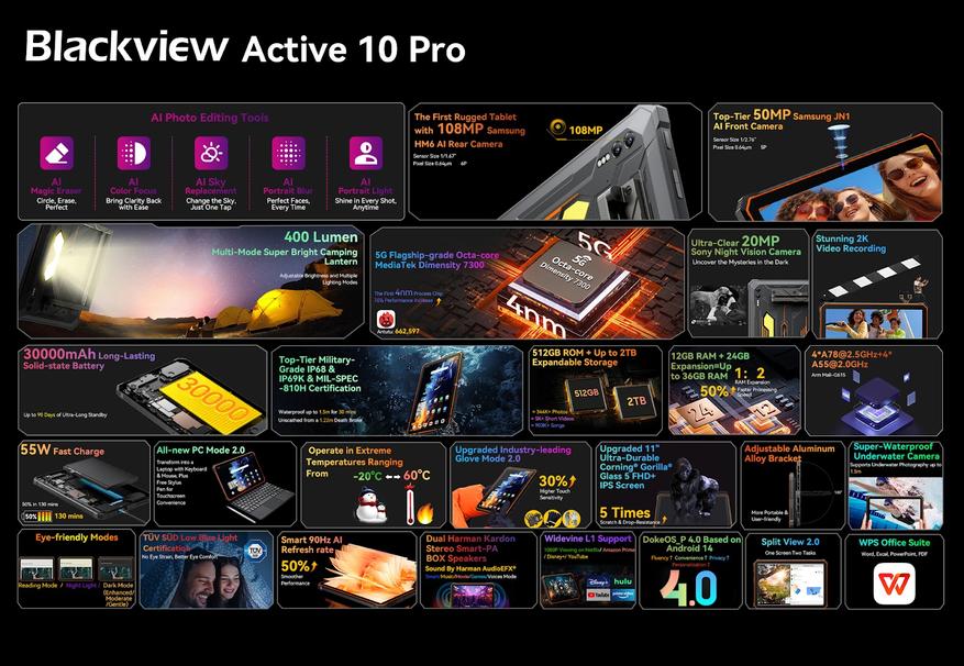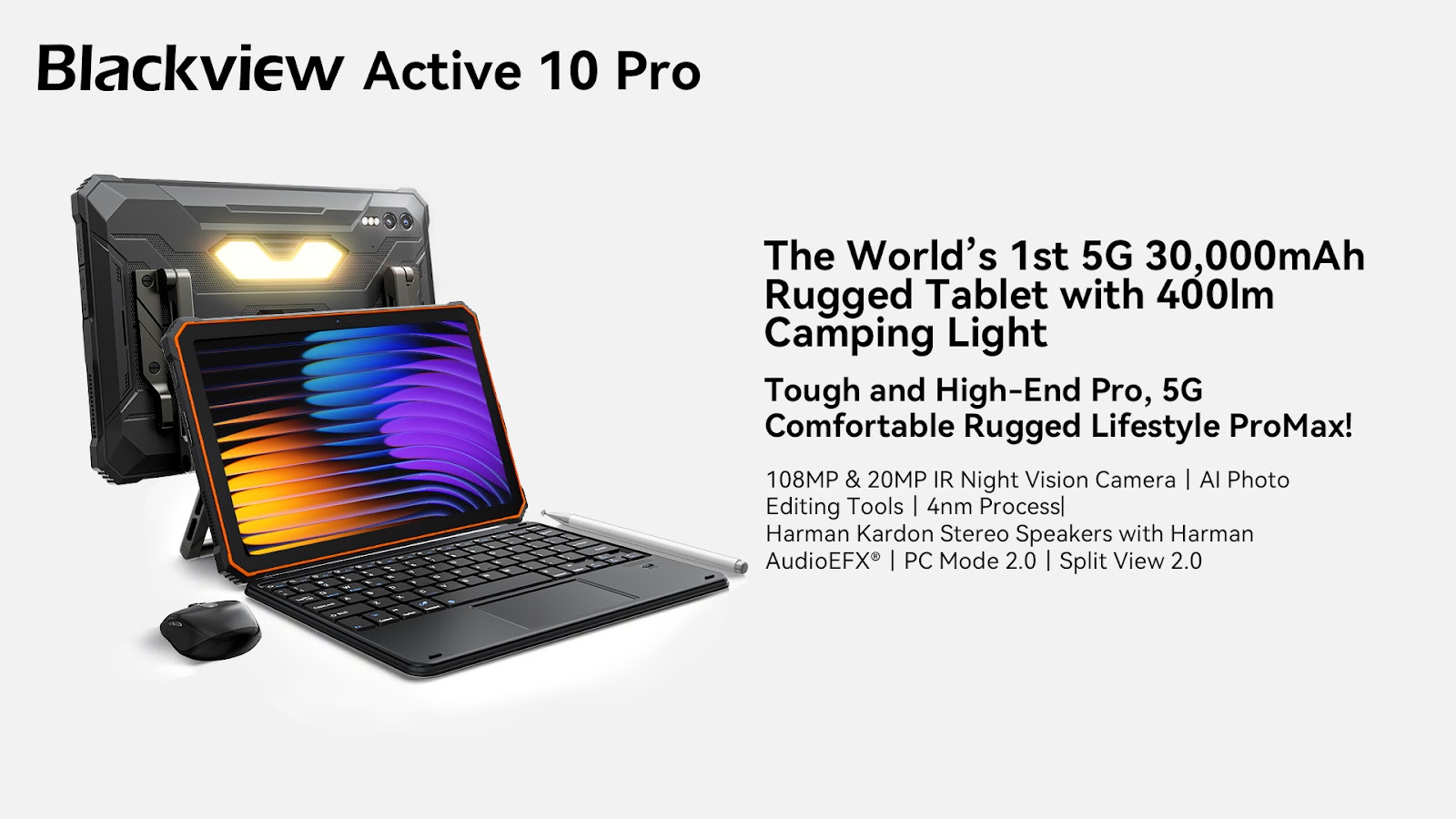 Blackview представляет первый в мире защищенный 5G-планшет с АКБ 30 000 мА•ч и кемпинговым фонарем