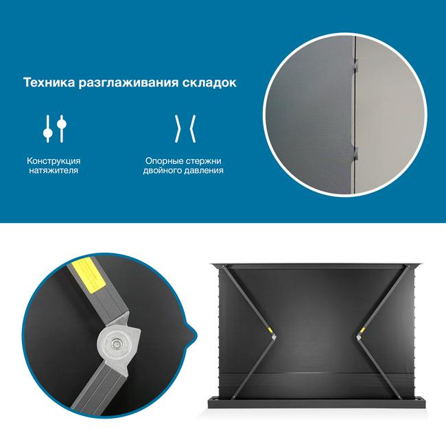 Технологии ALR и CLR снижают влияние внешних источников света. Модели ALR (CS-PSFRALR-221X125 и CS-PSFRALR-263X148) с диагоналями 100 и 120 дюймов предназначены для ультракороткофокусных проекторов, эффективно отражая свет проектора и подавляя внешнее освещение.