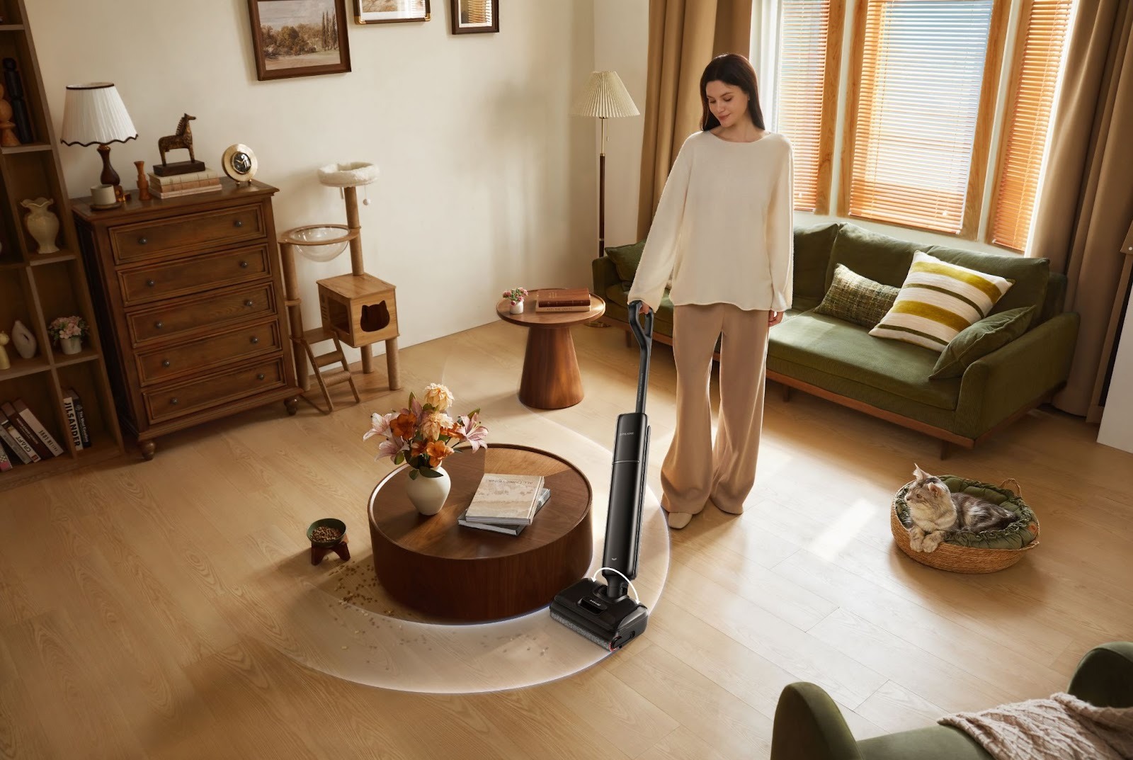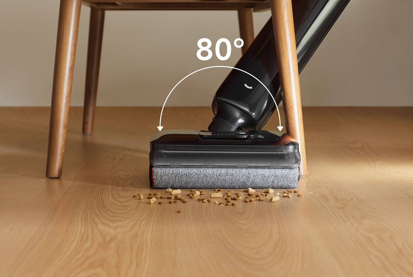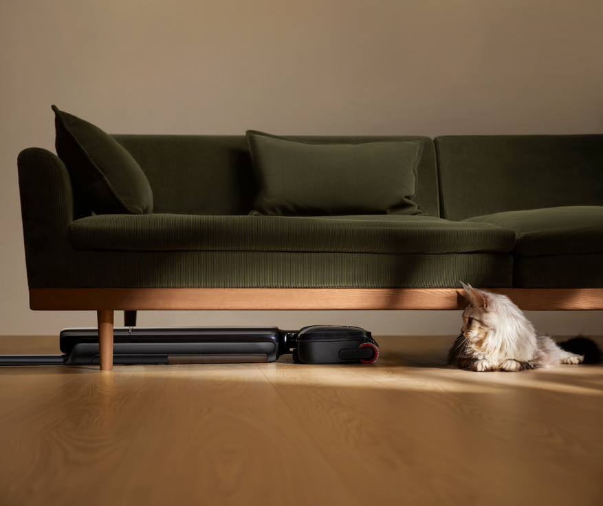 Одной из ключевых особенностей G12S Pro стала конструкция с возможностью полного раскладывания на 180°. Благодаря корпусу высотой всего 9,85 см пылесос легко проходит под диванами, кроватями и шкафами, где чаще всего скапливается пыль и шерсть.