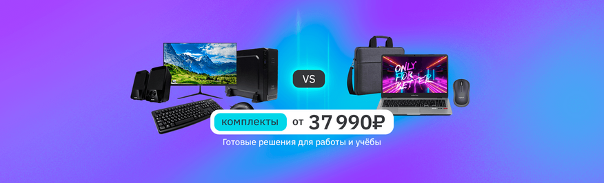 Магазин е2е4 собрал для вас готовые решения — ноутбуки и ПК с периферией от 37 990 рублей. Всё, что нужно для работы и учёбы — в одном комплекте.