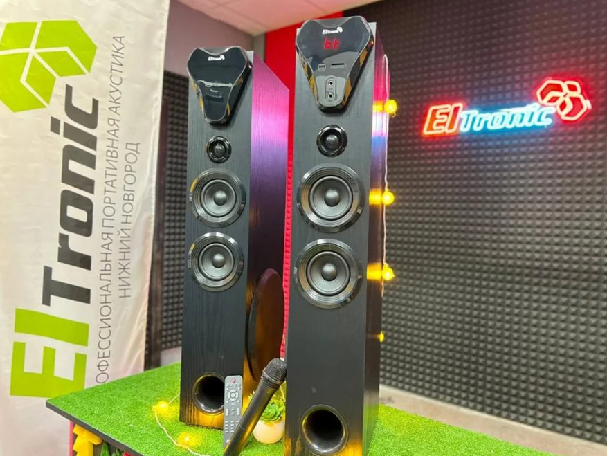 ELTRONIC 20-80 — это домашний кинотеатр с функциями музыкальной колонки, такая система два в одном. Она состоит из двух больших колонок высотой около метра, поэтому их можно ставить на пол, а можно на специальные подставки, в зависимости от того, на какой высоте расположен ваш телевизор и то удобное кресло, сидя в котором вы любите его смотреть.