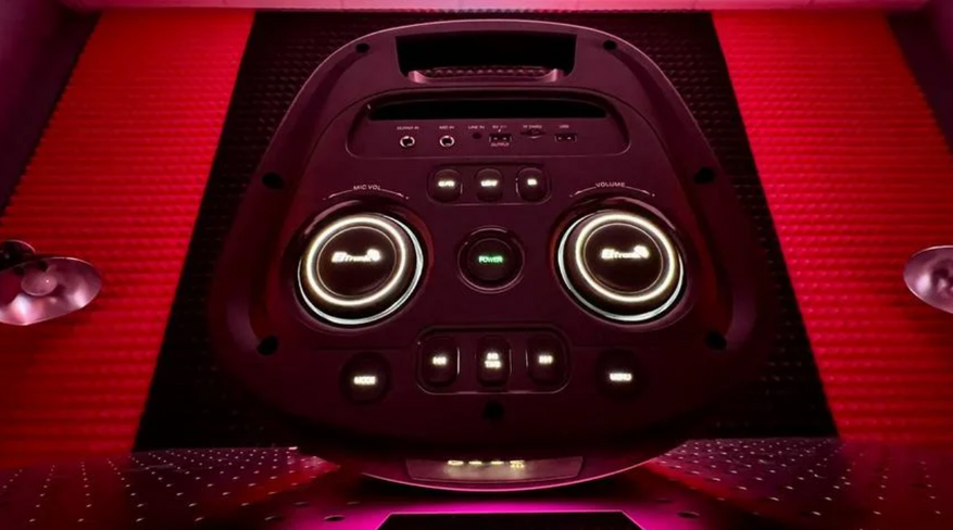 И, судя по дизайну, вторая миссия ей намного ближе — яркая, радужная полоса вокруг передней панели сообщает о нескромном характере акустической системы, она создана радовать и удивлять.