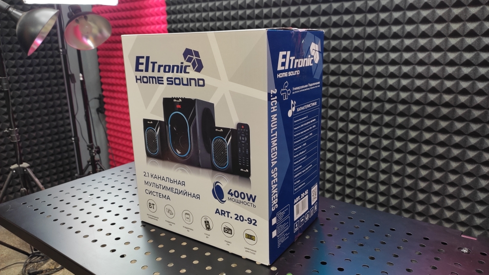 Бренд ELTRONIC для этих целей предлагает использовать новую акустическую систему 2.1 ELTRONIC 20-92. В комплекте два динамика и сабвуфер, к ним прилагаются провода для соединения, пульт для управления с любимого кресла и инструкция.