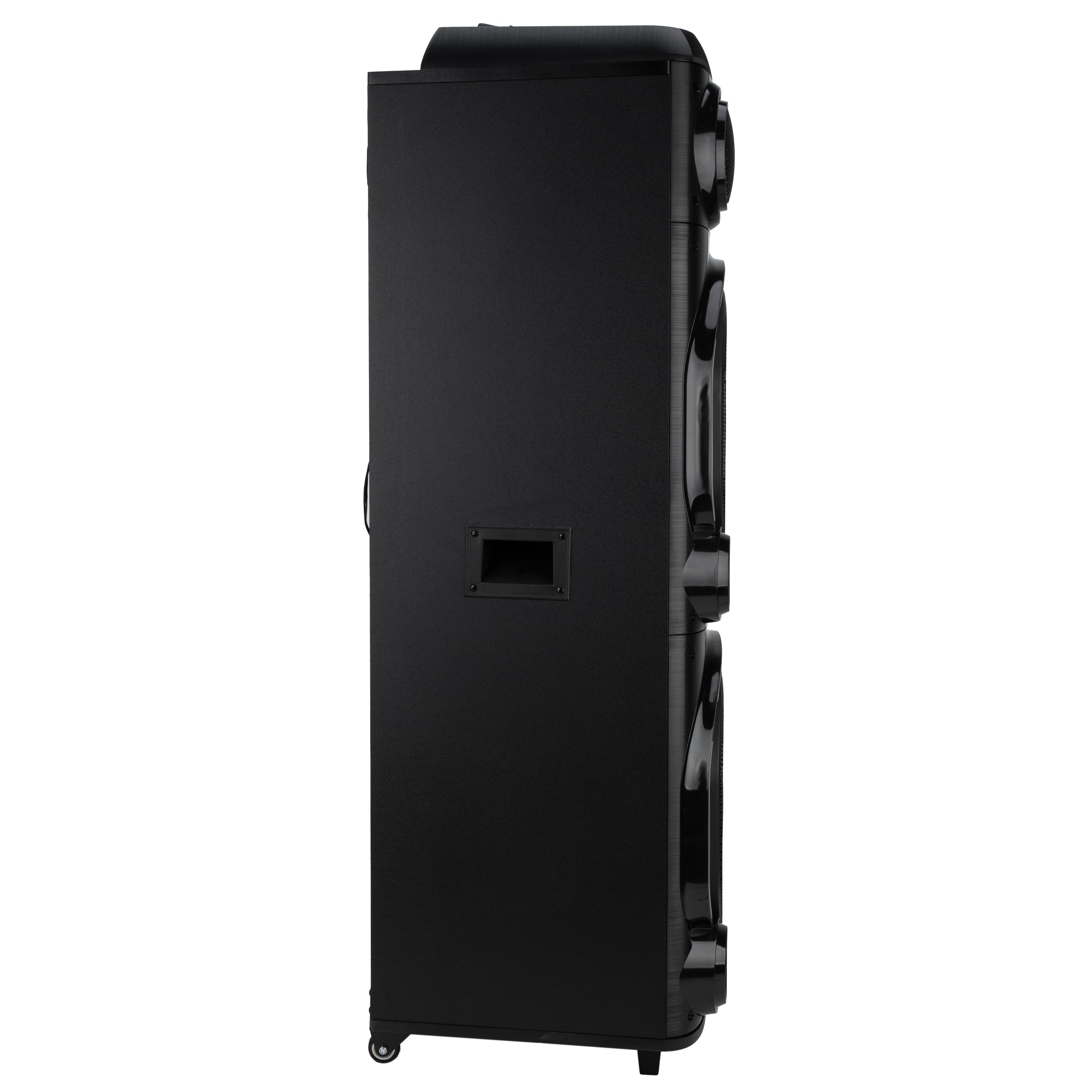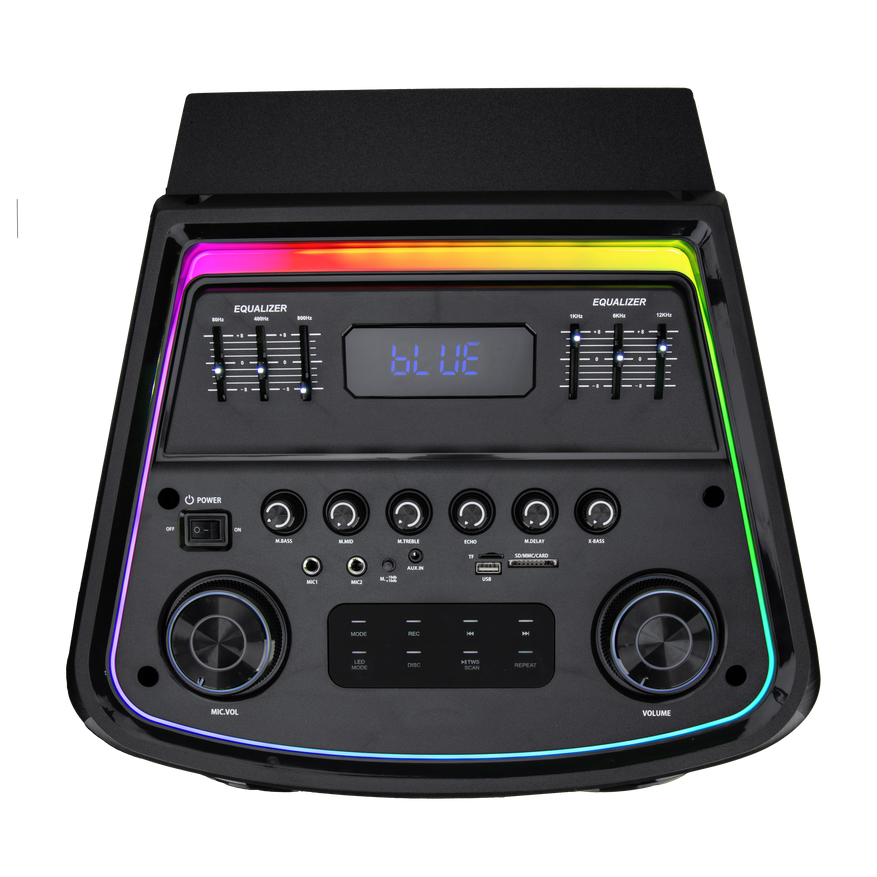 В передней части корпуса колонки за защитной металлической сеткой установлены два широкополосных динамика по 15 дюймов, высокочастотный драйвер, а также рядом установлены 4 фазоинвертора. Все громкоговорители колонки обрамлены динамической LED-подсветкой многорежимного действия.