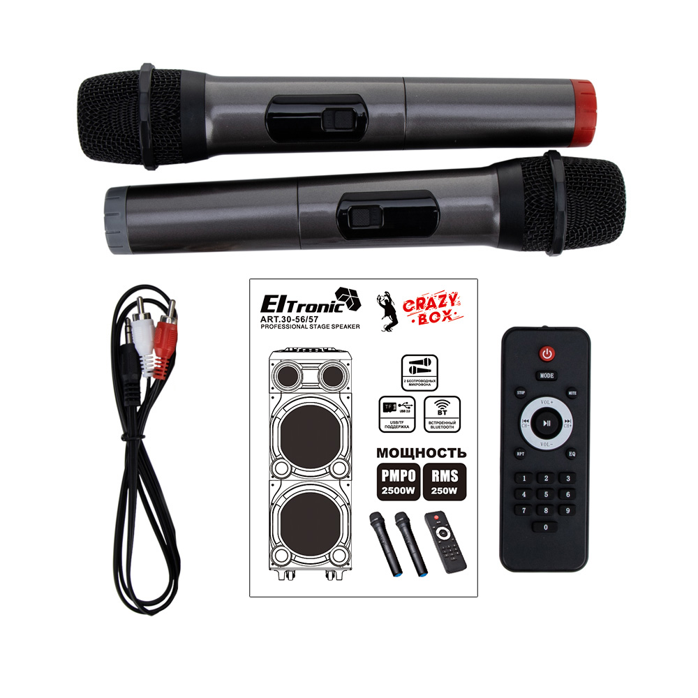 В основном компания Eltronic специализируется на мобильных акустических беспроводных колонках, но есть и модели более профессионального назначения, мощные, которые работают исключительно от сети 220V. Как раз к таким и относится новинка от ELTRONIC 30-56 CRAZY BOX 2500.