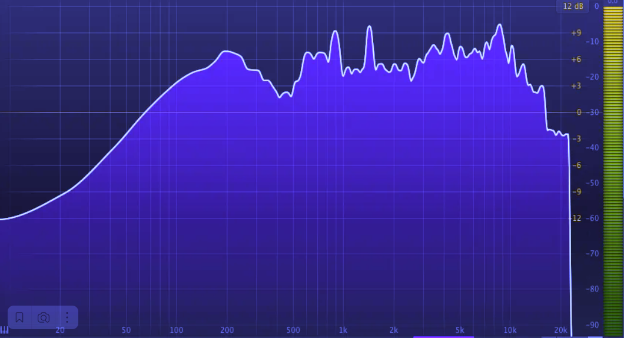 Испытание диапазона частот демонстрирует хорошо слышимую середину от 50 Гц до 20 кГц. Обратите внимание на приятное затухание и плавное рассеивание длинных ревербераций в высокочастотном диапазоне при прослушивании музыкальных композиций на инструментах. Колонка отлично отрабатывает при прослушивании танцевальной и рок музыки.