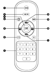 - «MODE» переключение режимов работы BT/TF/USB/AUX/FM