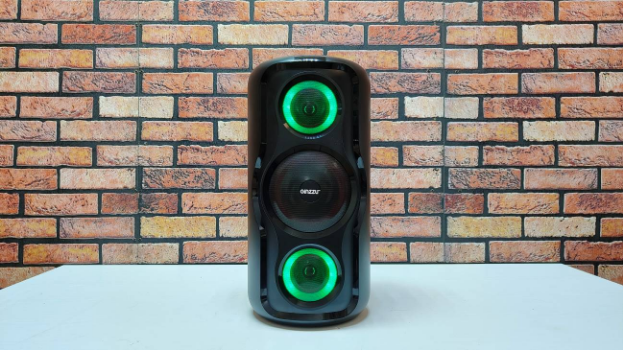 Два высокочастотных динамика 3″ (7.62 см) и один низкочастотный 6,5″ (16.5) на фронтальной поверхности скрыты под прочной перфорированной сеткой, черного цвета, посредине которой выгравирован логотип производителя. Каждый динамик окружен отдельным элементом подсветки, динамически изменяющейся в такт музыке и имеющей множество режимов и сценариев визуализации музыки. Для лучшего рассеивания света RGB лента закрыта белым матовым пластиком.