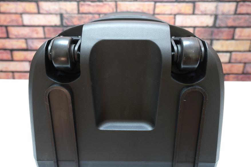 Внешний вид колонки точно не оставит никого равнодушным. Перед вами массивная, вытянутая вверх модель. Корпус выполнен из прочного пластика с матовой фактурой. Для облегчения транспортировки производитель предусмотрел колёсики в основании корпуса и две удобные ручки для переноски сверху.