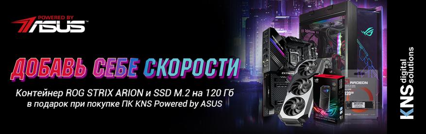 Получите в подарок контейнер ROG Strix Arion и SSD объёмом 120 ГБ при покупке компьютера Powered by Asus на базе материнских плат Asus (на чипсетах Z490/Z390, B550, X570, TRX40) и видеокарт Asus (Nvidia RTX, AMD RX5700 и выше). Предложение действует с 14 сентября 2020 по 31 октября 2020.