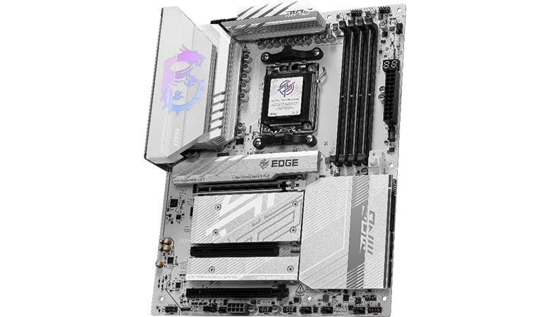 Модель MPG B850 Edge TI Wifi выделяется 8-слойной печатной платой серверного класса и 14-фазной системой питания Duet Rail с 80-амперными модулями. Плата поддерживает Wi-Fi 7 и 5G Ethernet, а также оснащена технологиями EZ DIY, включая защёлку EZ M.2 Clip II и кнопку EZ PCIe Release. Система охлаждения Frozr Guard с радиатором EZ M.2 Shield Frozr II предотвращает перегрев, а дополнительный разъём PCIe обеспечивает стабильное питание для видеокарт.