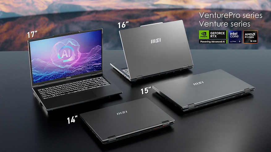 Серия Stealth с тонким корпусом из магний-алюминиевого сплава оснащена процессорами Amd Ryzen AI 300 или Intel Core Ultra 200H, видеокартой RTX 50 и системой Cooler Boost 5. Полноразмерная клавиатура с подсветкой и качественные динамики делают её универсальной для работы и игр. Vector с процессорами Intel Core Ultra 200HX или Amd Ryzen 9000 и отдельным термомодулем для SSD подходит для творческих задач, поддерживая Thunderbolt 5. Venture и VenturePro для корпоративного сегмента предлагают процессоры Intel Core Ultra 200H и Amd Ryzen AI 300, OLED-дисплеи, аккумуляторы на 90 Вт•ч и ИИ-оптимизацию через AI Engine.
