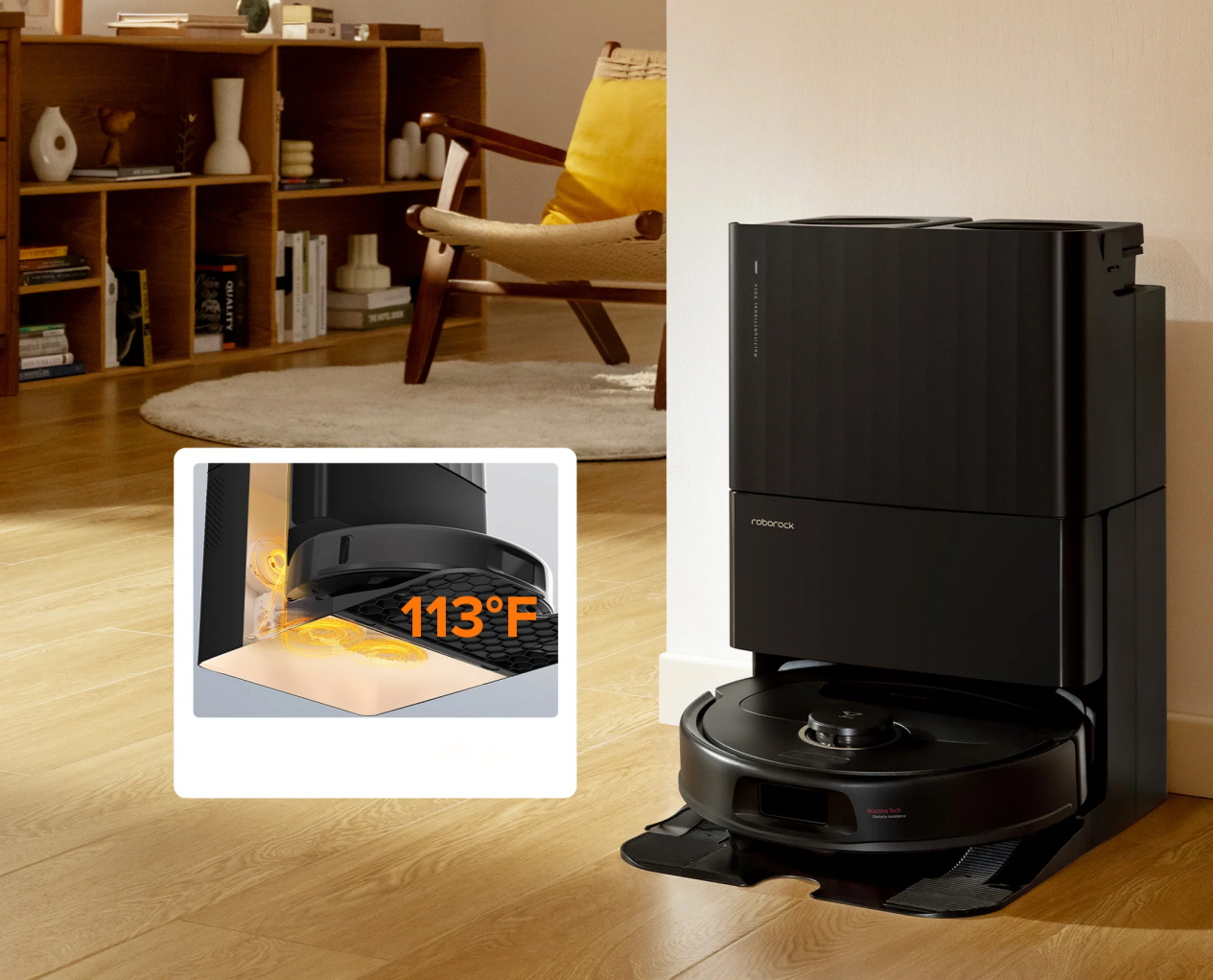 Одной из ключевых особенностей QRevo S является многофункциональная базовая станция с системой сушки швабры горячим воздухом. После каждого цикла уборки швабра автоматически высушивается при температуре 45°C, что предотвращает размножение бактерий и появление неприятного запаха. Эта функция избавляет пользователя от необходимости вручную сушить швабру и продлевает срок ее службы.