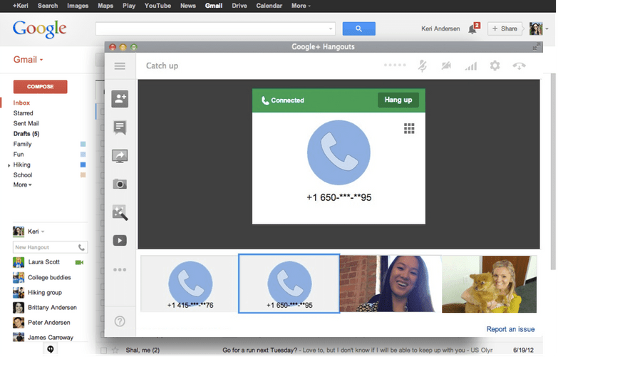 Доступ к Google Hangouts можно получить с боковой панели Gmail и на сайте hangouts.google.com. Здесь также есть возможность отправить сообщение по электронной почте, SMS-сообщение и принять участие в видеозвонке. На странице «Google Hangouts» отображаются недавние контакты и разговоры, кнопка создания нового видео или телефонного звонка, текстового сообщения. Google Hangouts идеально подходит для небольших групп пользователей, но не удобен для средних и больших команд из-за ограничения на 25 участников. Поэтому неудивительно, что Google, похоже, переводит пользователей на свой флагманский продукт Google Meet. Но это не значит, что Google Hangouts отжил свой век.