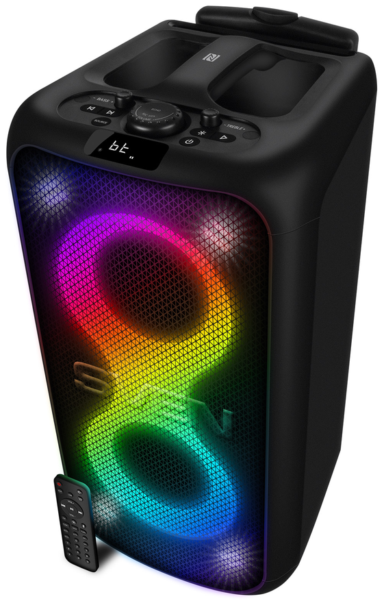 SVEN PS-1000 создана для тех, кто хочет зажигать под громкую музыку и создавать праздничное настроение в любом месте. Эта портативная акустика сочетает высокую мощность, яркую подсветку и удобство, что делает её идеальной для вечеринок, выступлений или музыкальных экспериментов.